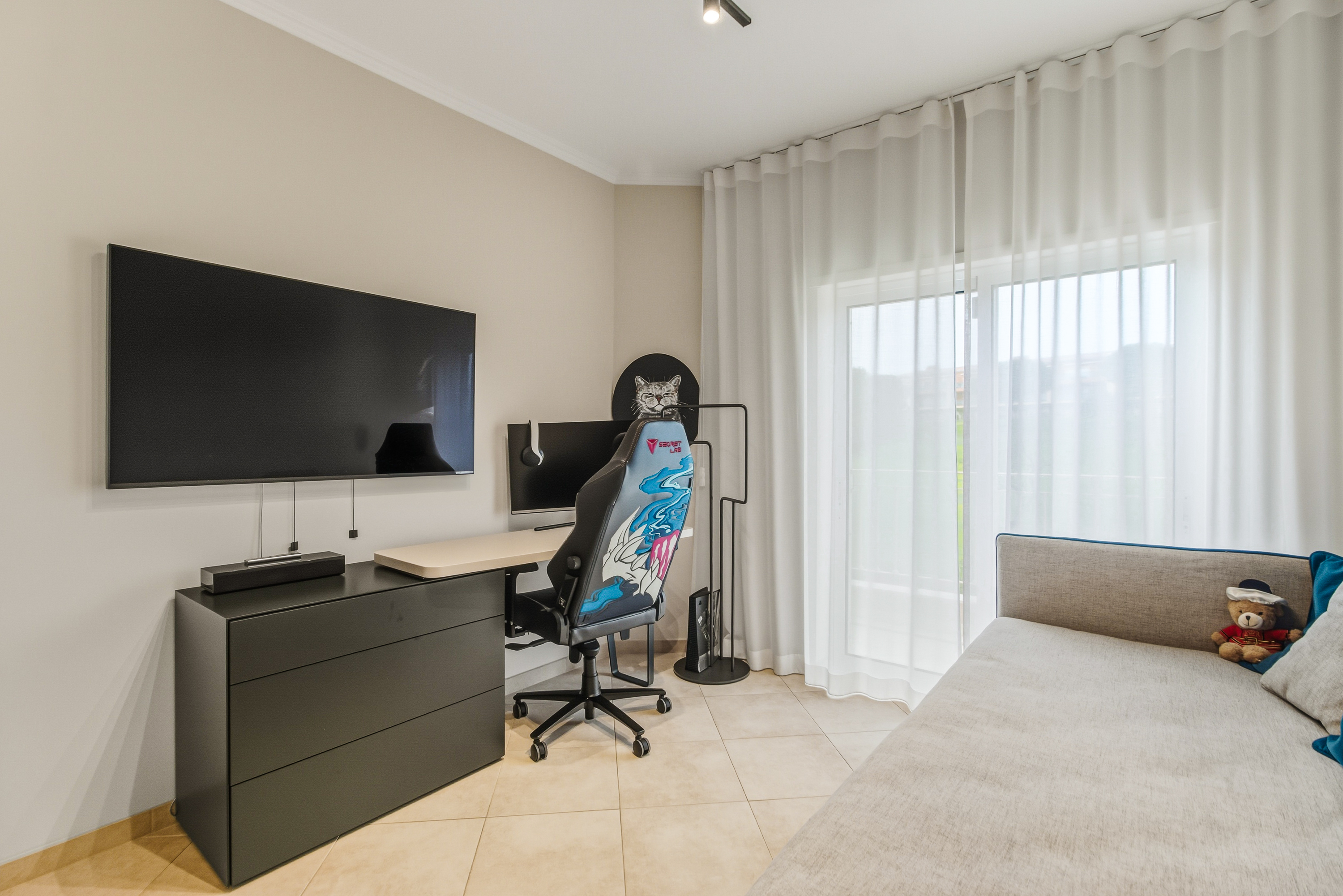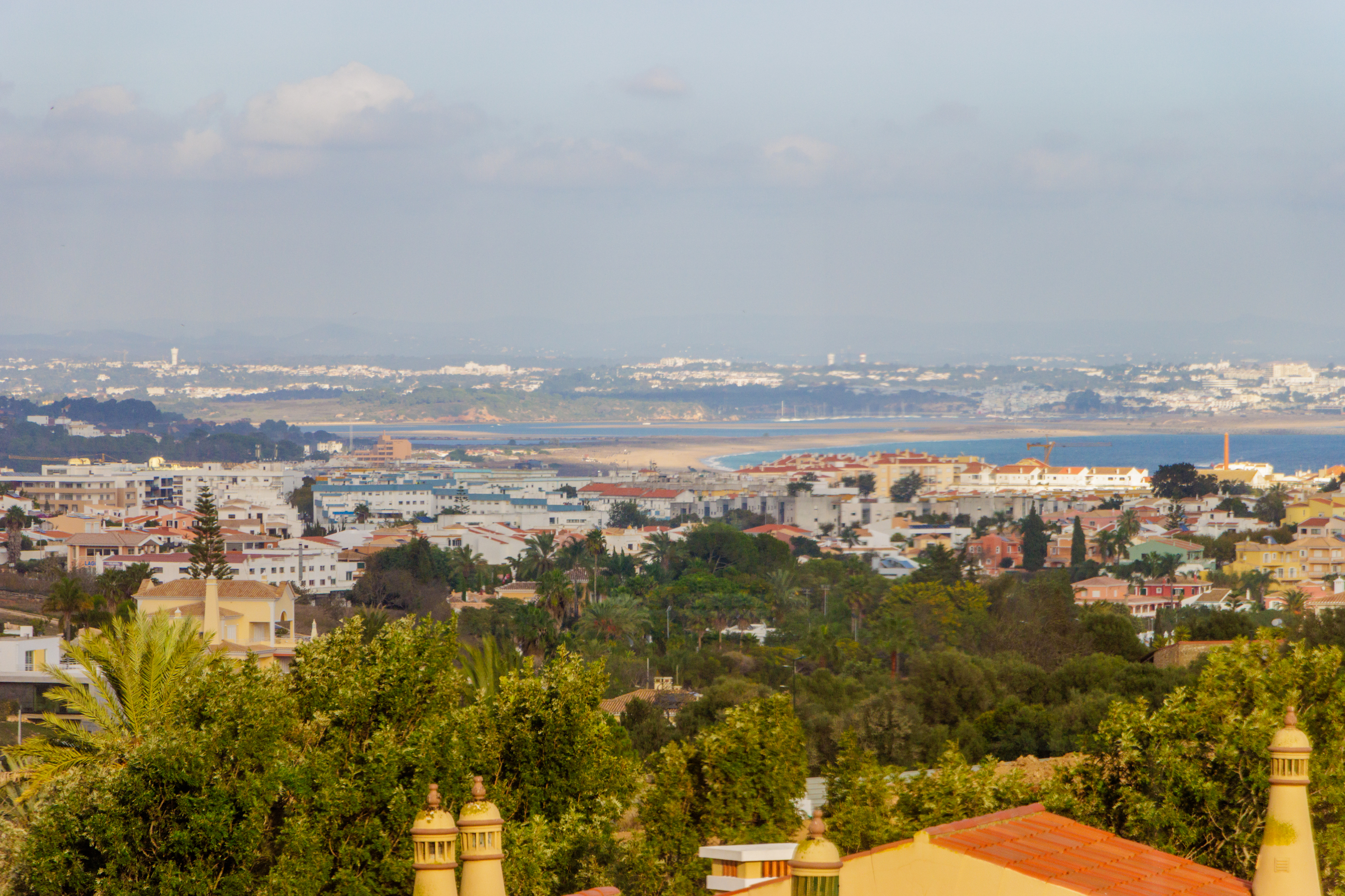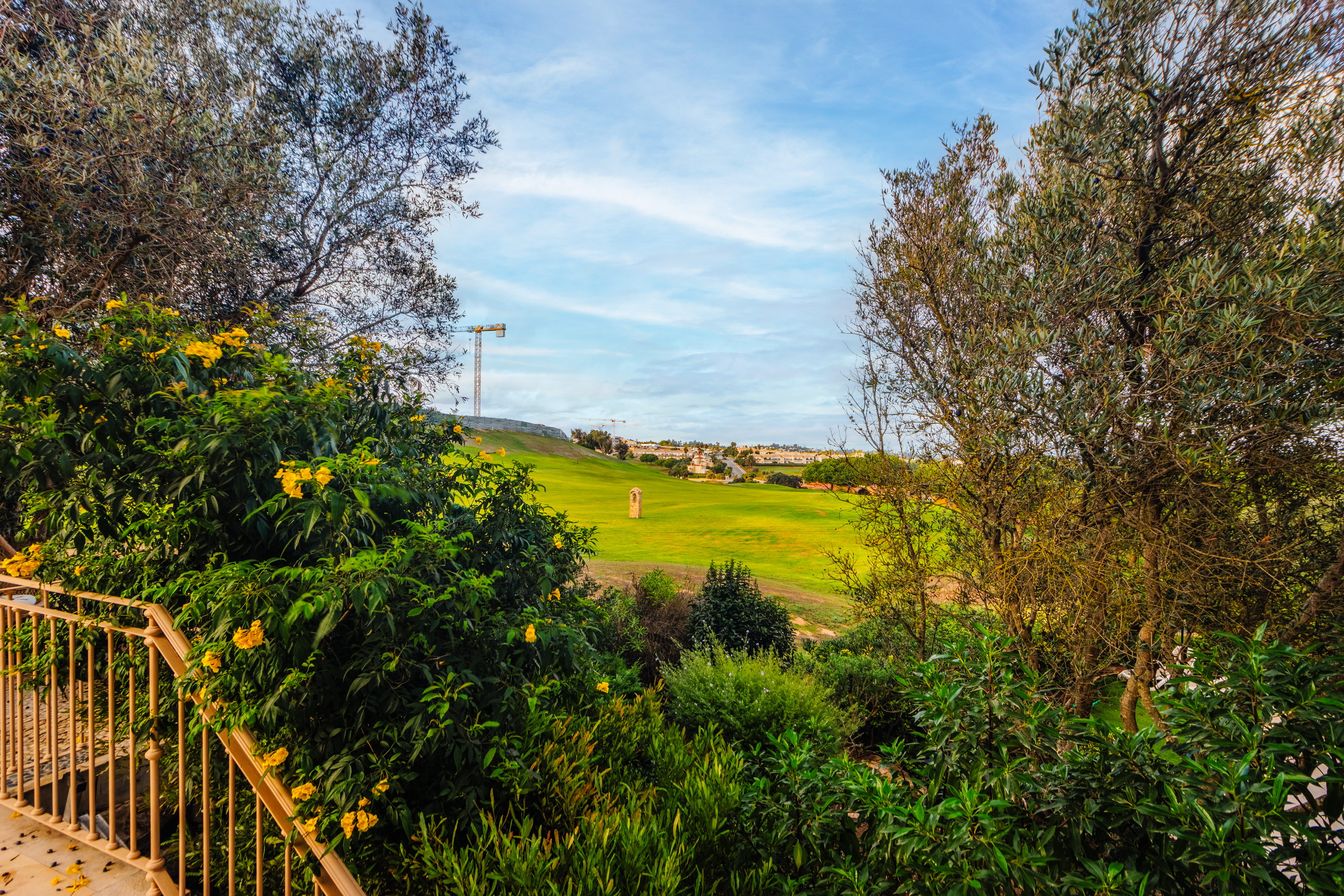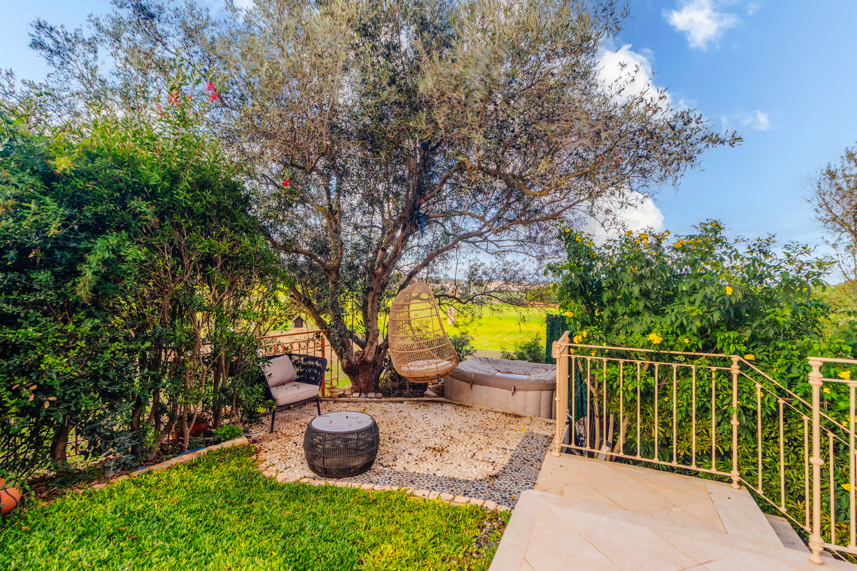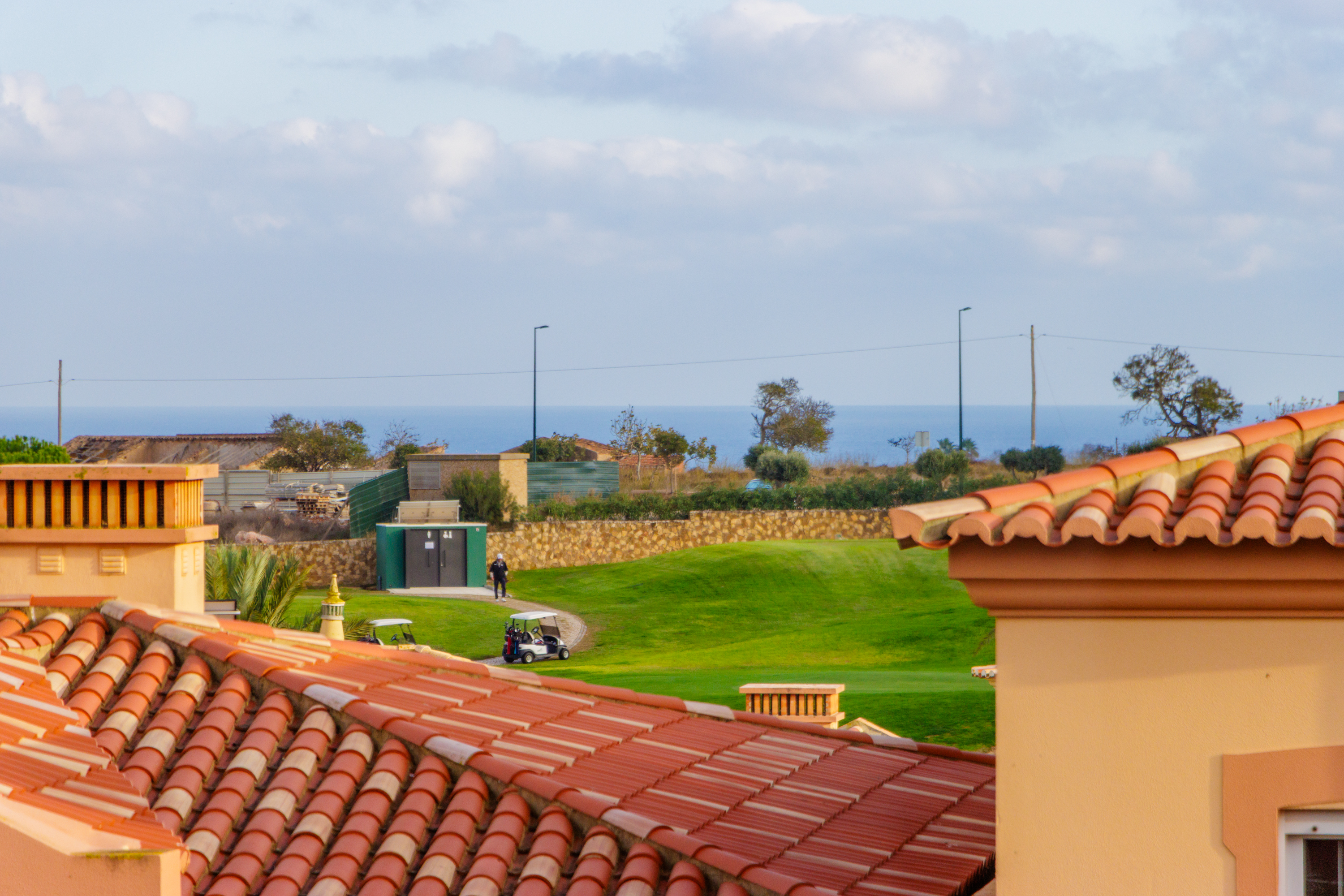 Im Obergeschoss befinden sich zwei weitere Schlafzimmer, jeweils mit eigenem Bad und direktem Zugang zu einer großen umlaufenden Terrasse, die viel Platz bietet, um die Sonne der Algarve zu genießen. An der Vorderseite des Hauses sorgt ein verglaster Balkon mit Faltglaspaneelen für einen vielseitig nutzbaren Raum das ganze Jahr über. Von hier aus bietet sich ein Panoramablick über das Resort und bis hin zu den Bergen in der Ferne.