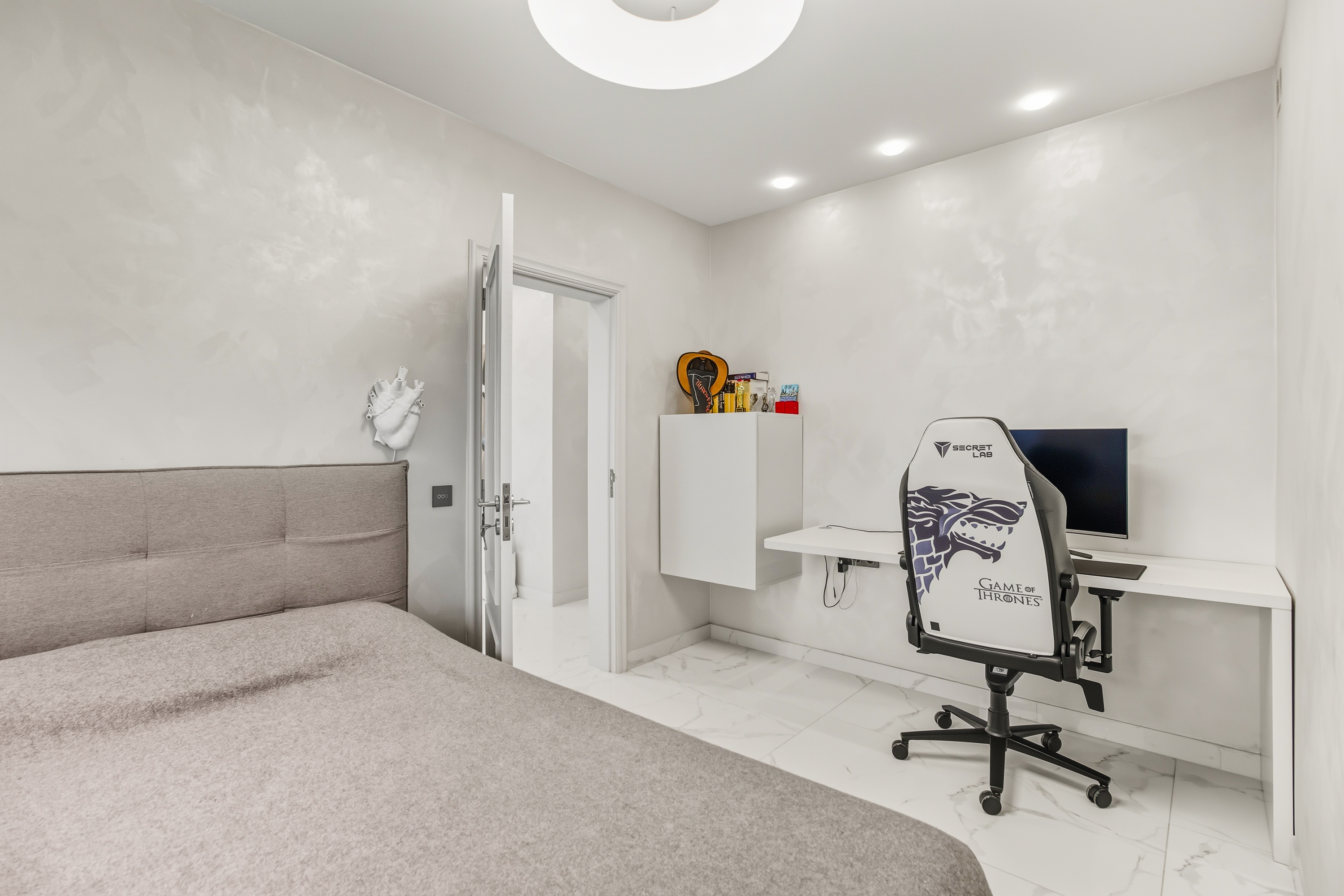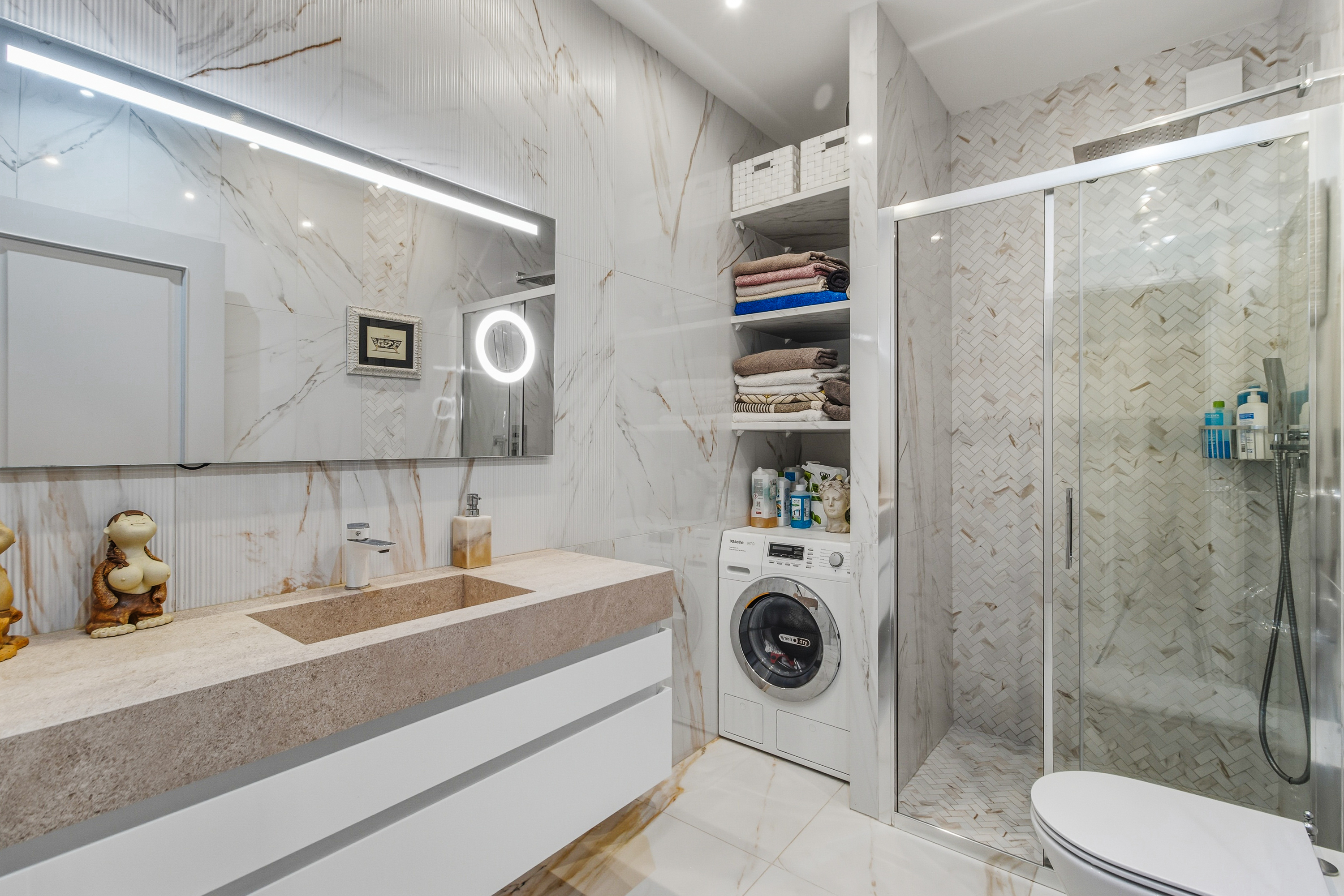 Das Haus ist mit Fußbodenheizung in allen Badezimmern und in der Küche ausgestattet, um während der kühleren Monate für Behaglichkeit zu sorgen. Darüber hinaus verfügt es über 10 Solarpaneele mit Batteriesystem und eine Installation, die einen unterbrechungsfreien Betrieb im Falle eines Stromausfalls ermöglicht — für Nachhaltigkeit und Energieunabhängigkeit.