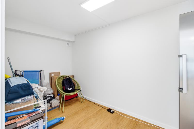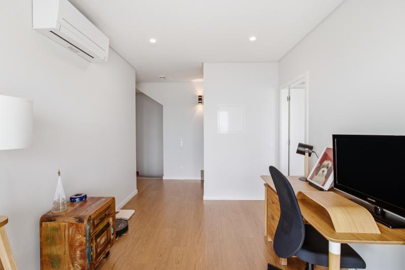 Das dritte Schlafzimmer, zwischen den beiden gelegen, ist derzeit offen gestaltet, um mehr Tageslicht hereinzulassen, und wird als Büro genutzt. Es kann problemlos wieder als eigenständiges Schlafzimmer geschlossen werden.