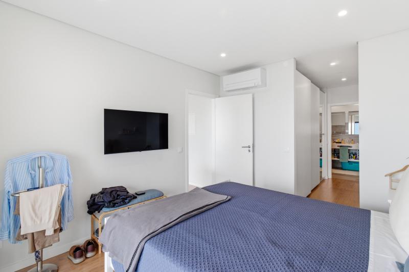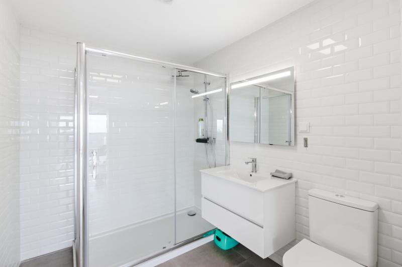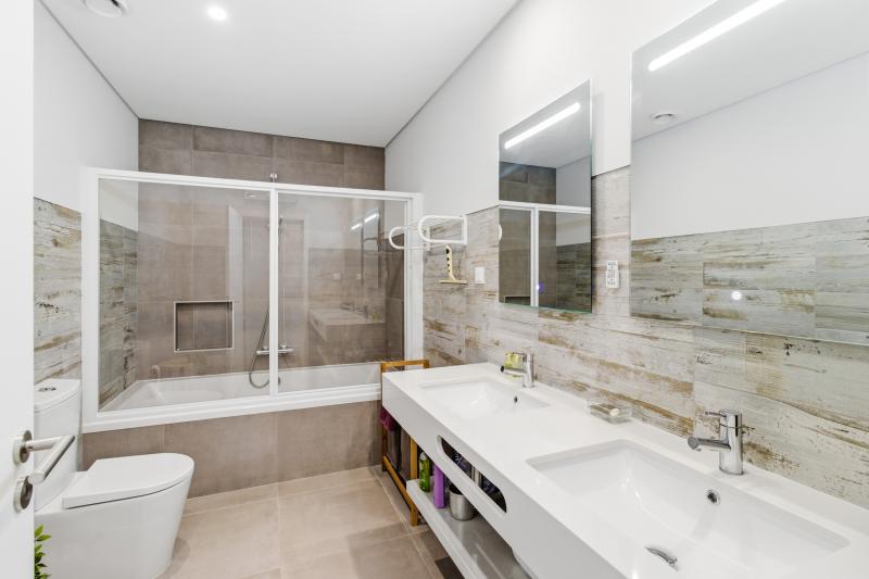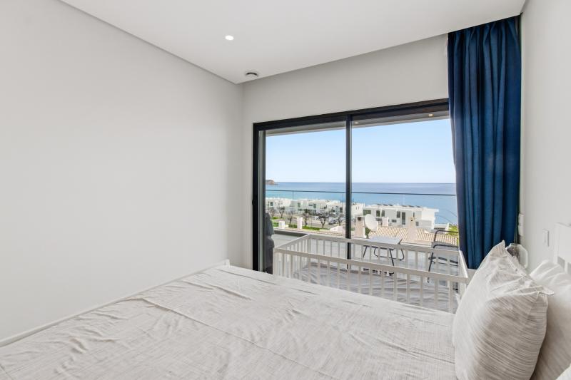 Auf der unteren Ebene befinden sich drei Schlafzimmer. Zwei großzügige Schlafzimmer mit Bad en Suite verfügen über begehbare Kleiderschränke, Meerblick und direkten Zugang zu einem großen Balkon und bieten private und ruhige Rückzugsorte.