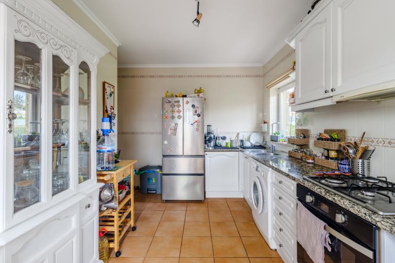 Inside, the layout is practical and well-proportioned. The large living room opens onto a sunny south-facing balcony, ideal for relaxing or entertaining. There is a separate kitchen, which is fully equipped and has direct access to one of the balconies. The master bedroom features an en-suite bathroom, built-in wardrobes, and its own private south-facing terrace. A second bedroom, also with built-in wardrobes, is located at the rear of the property alongside the third bedroom which is currently used as an office and guest space—all with access to the spacious BBQ terrace.