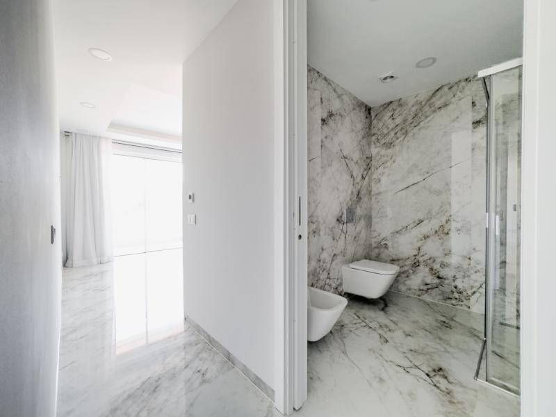 Additional features include fully installed air-conditioning for both heating and cooling, solar panels for hot water, electric shutters controlled individually or with a central control station, high-quality double-glazed windows, and private parking in the underground garage.