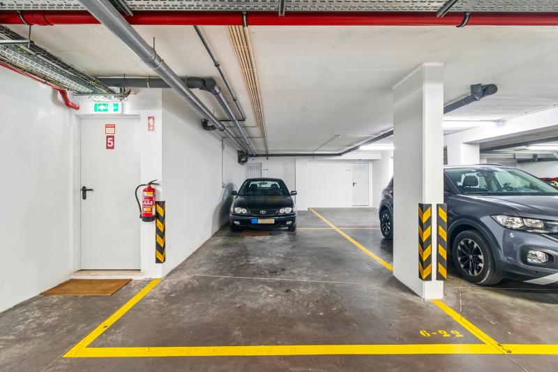 As you step into the apartment, you’re welcomed by a bright entrance hall that leads into the open-plan kitchen, flowing nicely into a spacious living and dining area. Floor-to-ceiling windows flood the space with natural light and open directly onto a generous balcony with a built-in BBQ—perfect for lazy mornings or evening get-togethers. The sliding glass doors make it a space you can enjoy all year round.