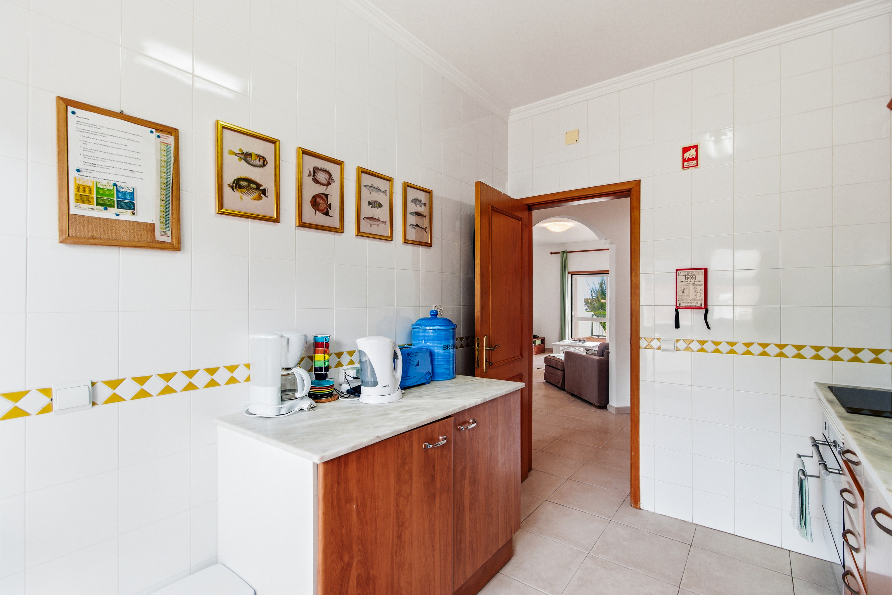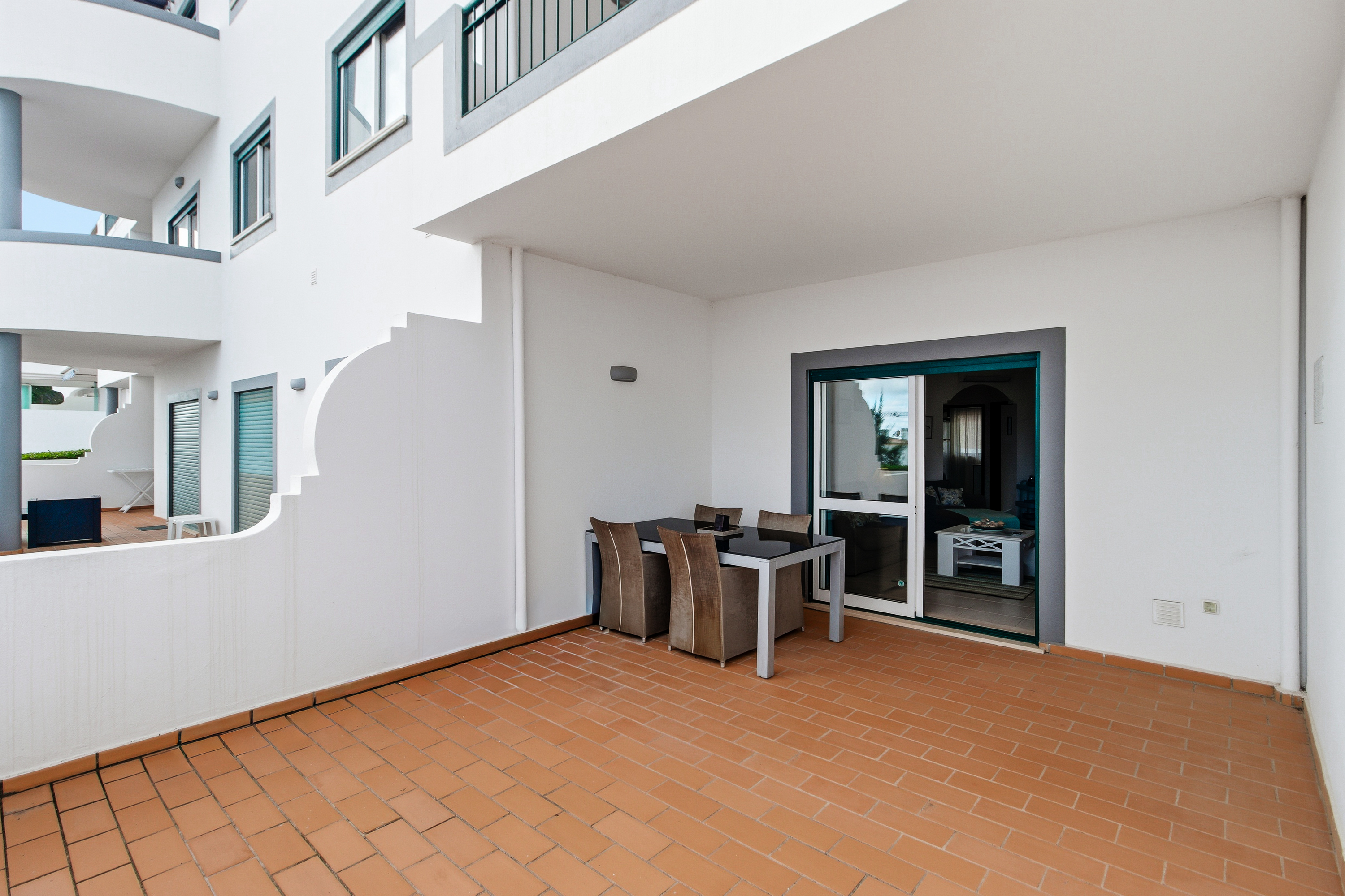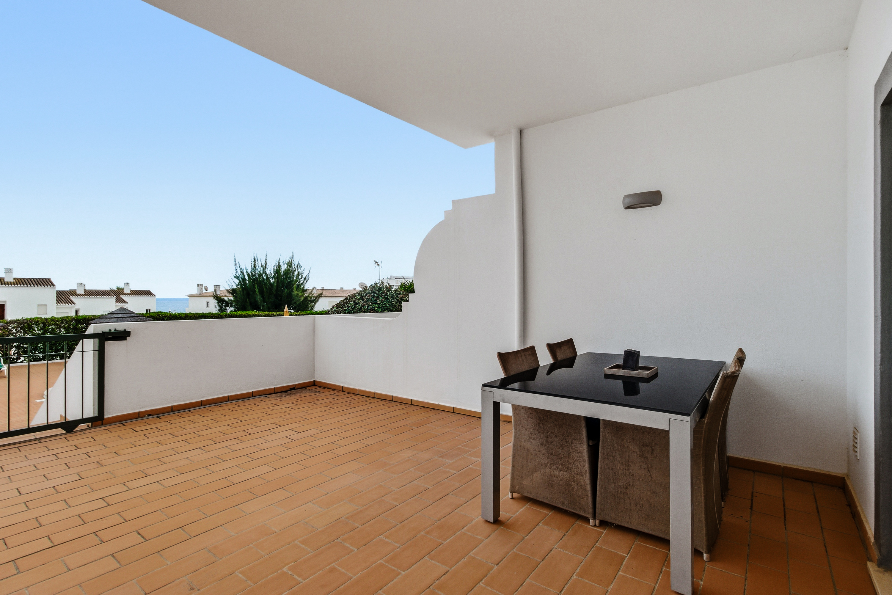 As you step inside, you’re welcomed by an inviting entrance hall that flows naturally into the rest of the home. The spacious, light-filled living room opens onto a generous semi-covered terrace, where you can enjoy beautiful south-facing sea views. With direct access to the pool area, this is the perfect setting for relaxing, dining outdoors, or soaking up the Algarve sunshine.