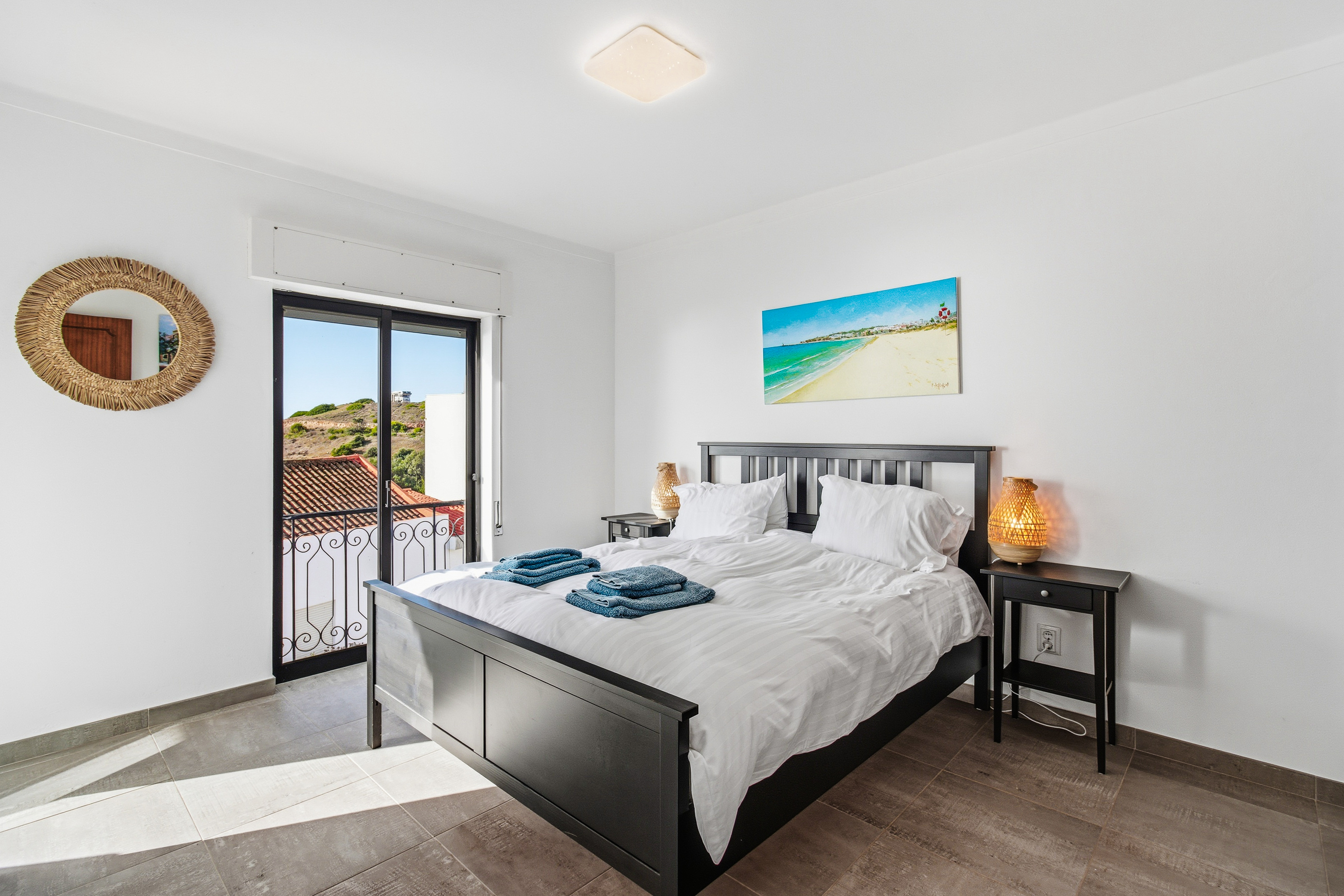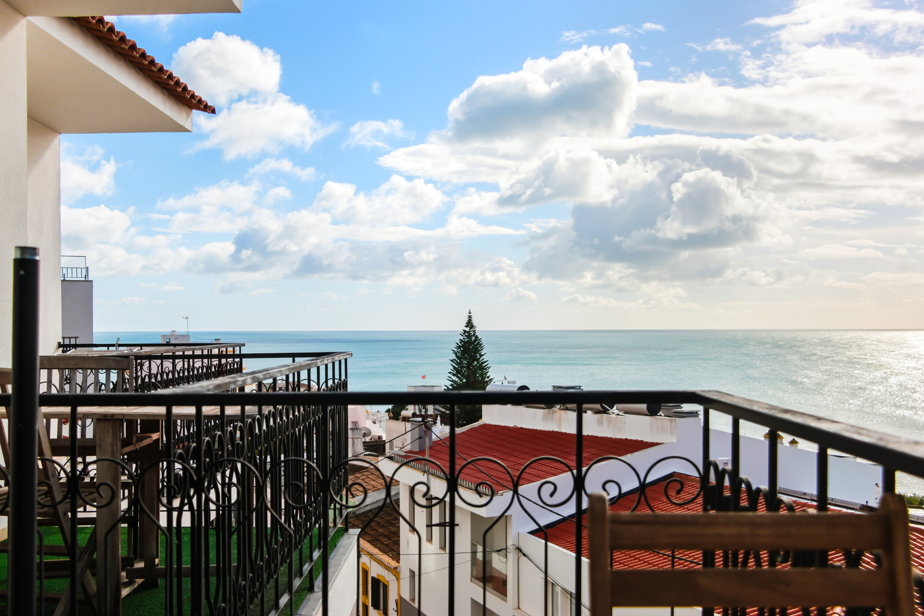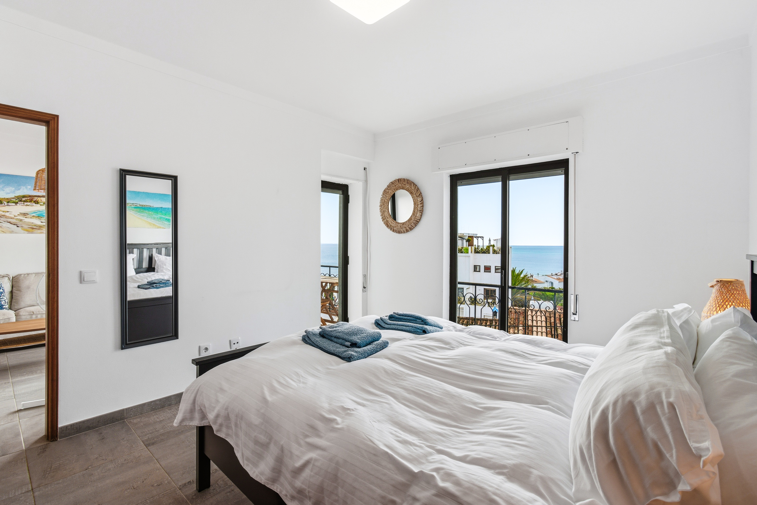 Both bedrooms feature fitted wardrobes, and one enjoys its own private balcony with beautiful sea views.