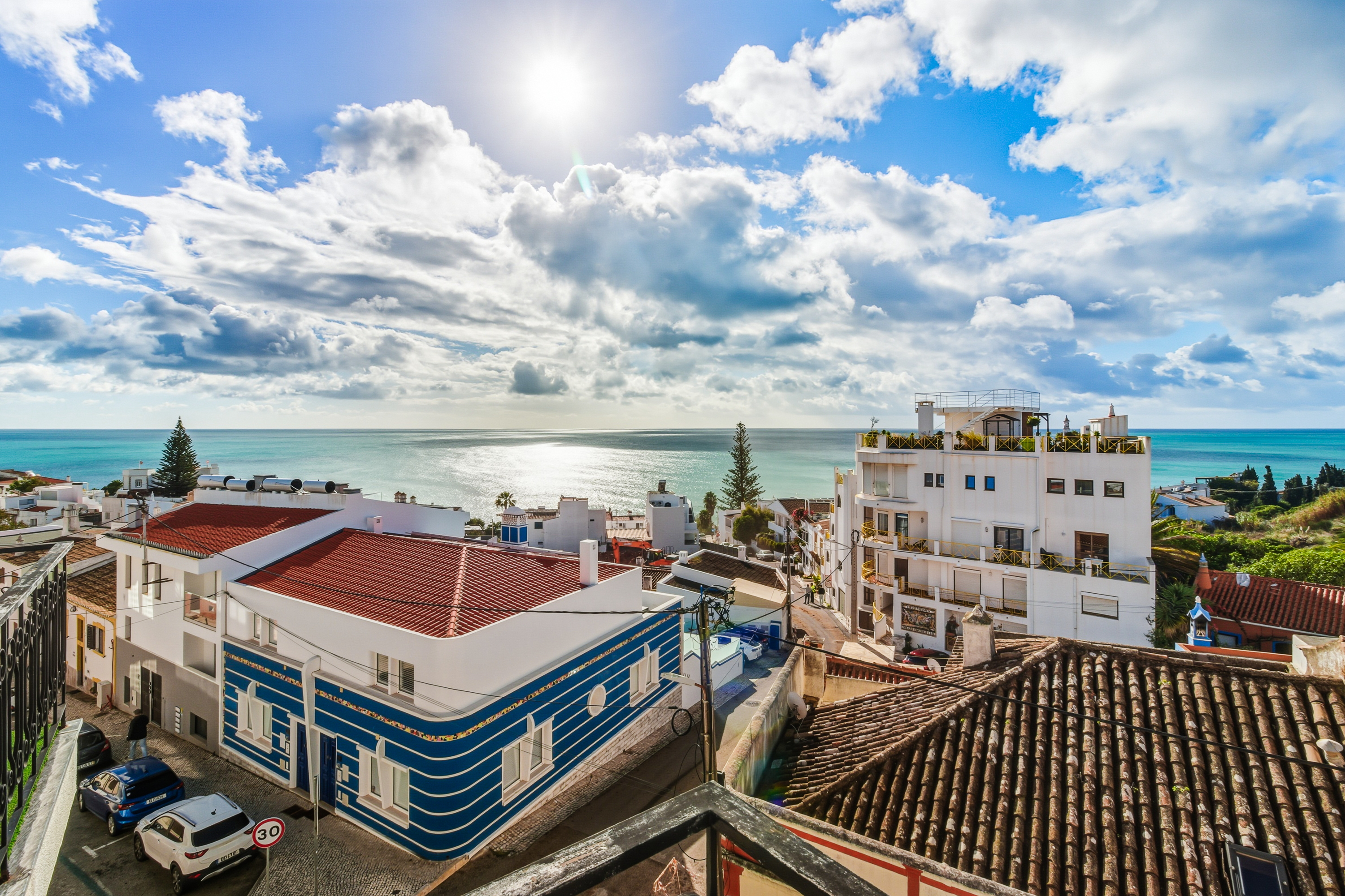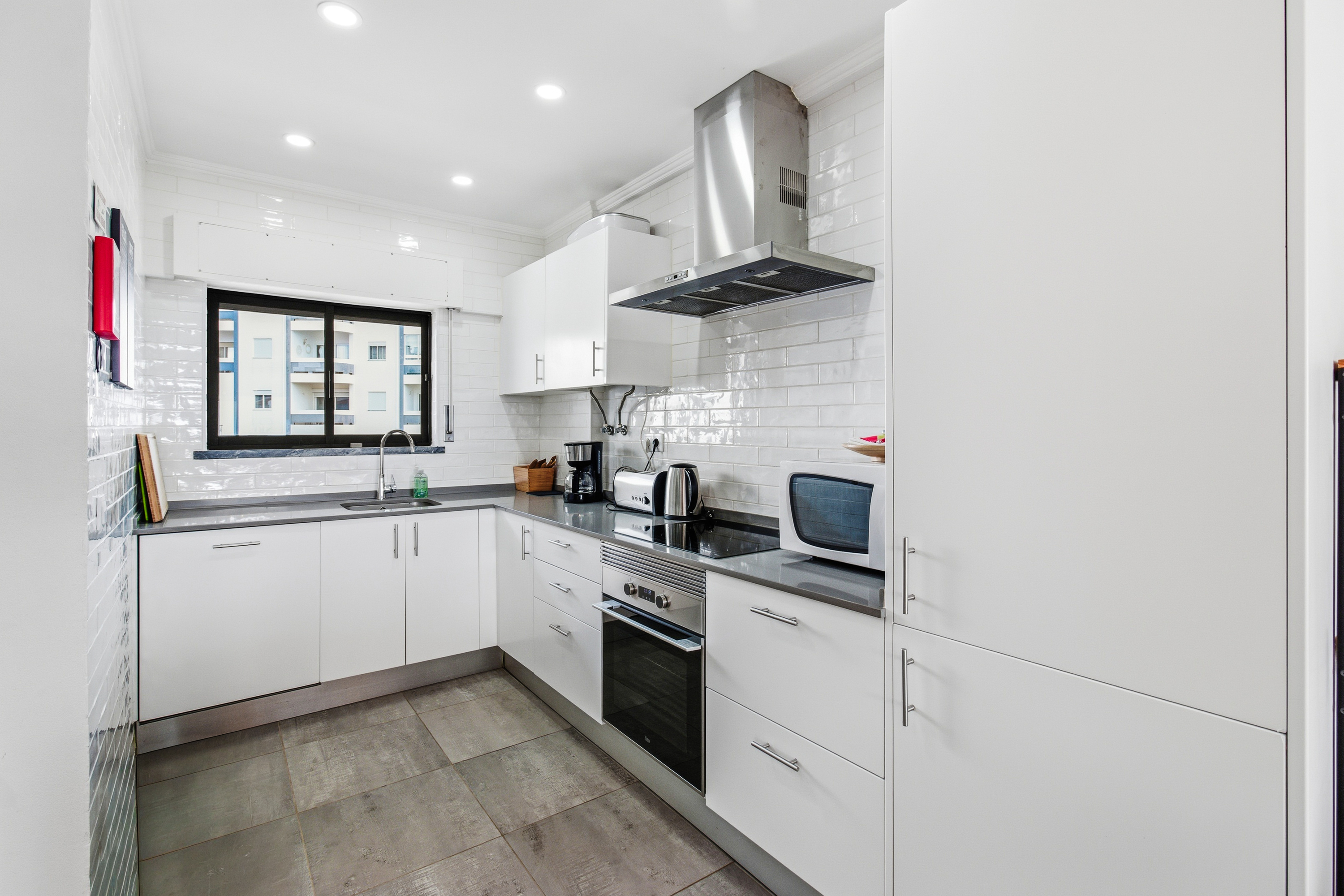 The open-plan living, dining, and kitchen area is bright and welcoming, flowing seamlessly onto a south-facing terrace — perfect for enjoying the Algarve sunshine.