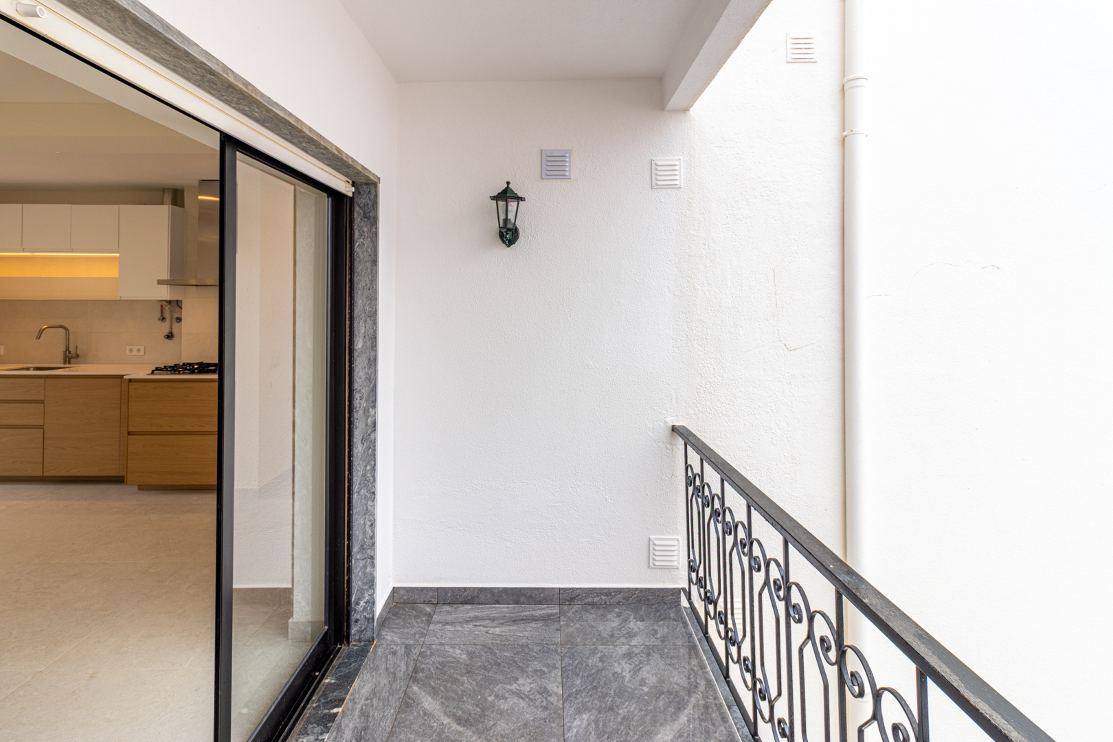 Both bedrooms feature fitted wardrobes and share a well-appointed balcony, providing an additional outdoor retreat.