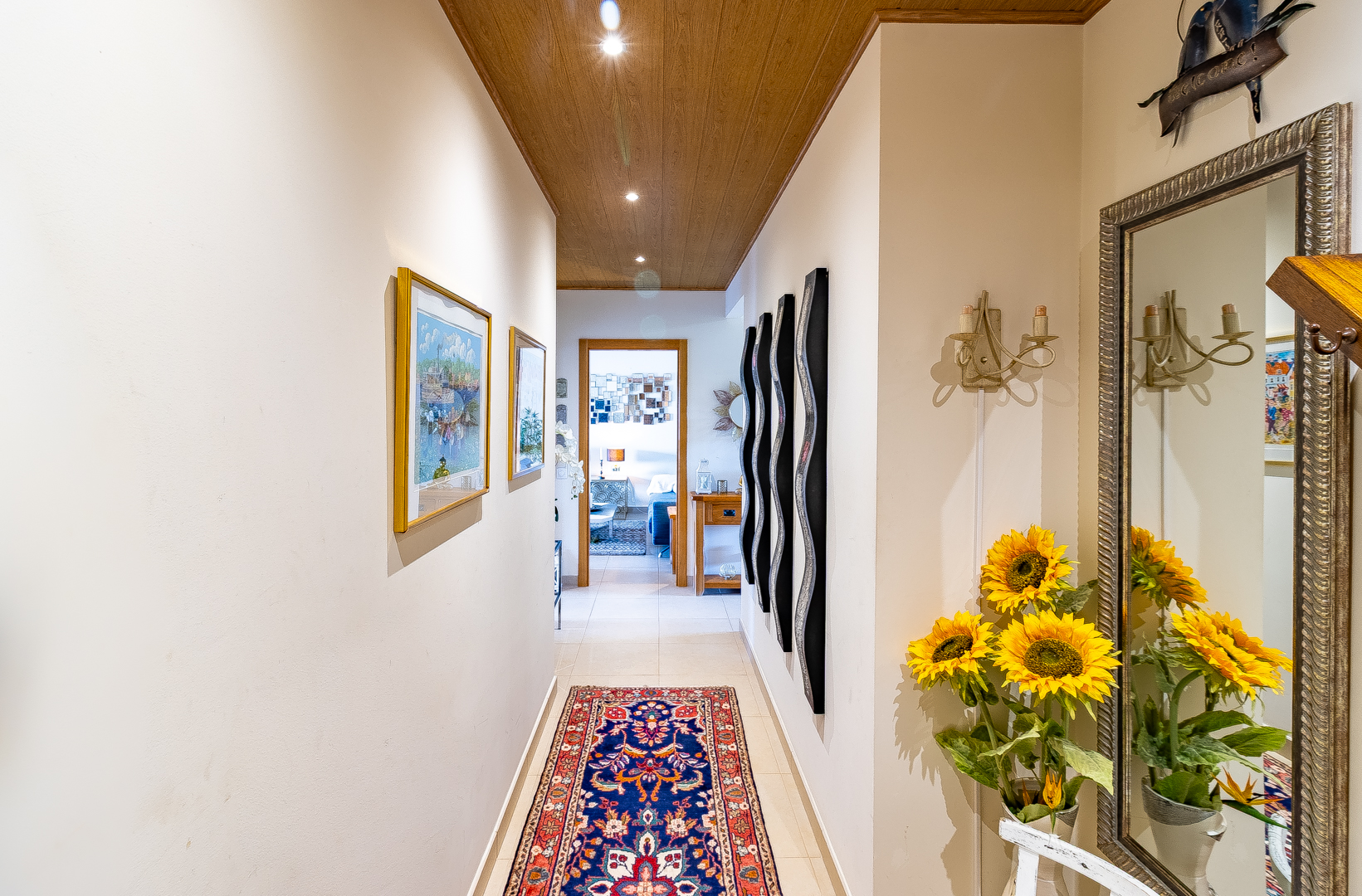 Inside, the property has been carefully maintained and benefits from several upgrades, including new Miele kitchen appliances, an energy-efficient water heater, a renovated bathroom with a walk-in shower, and regularly serviced air conditioning. One of its greatest assets is the private double garage, offering secure parking for two cars, along with a large, dry storage room fitted with shelving, an extra fridge and freezer, and a dryer for towels and textiles.
