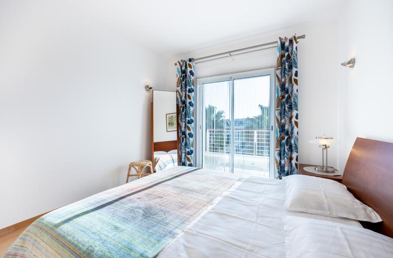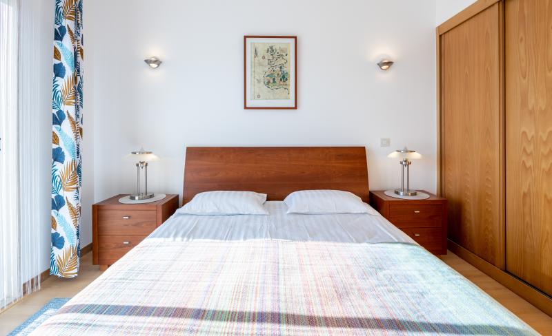 The living space extends out to a large balcony — the perfect spot to relax or entertain while enjoying sunny views towards the marina and the water. It’s an ideal setting for outdoor al fresco dining, whether it’s breakfast in the morning sun, a leisurely lunch, or dinner in the warm Algarve evenings. The apartment also benefits from air conditioning in both the living room and bedroom, a ceiling fan in the living area, and fiber-optic internet.