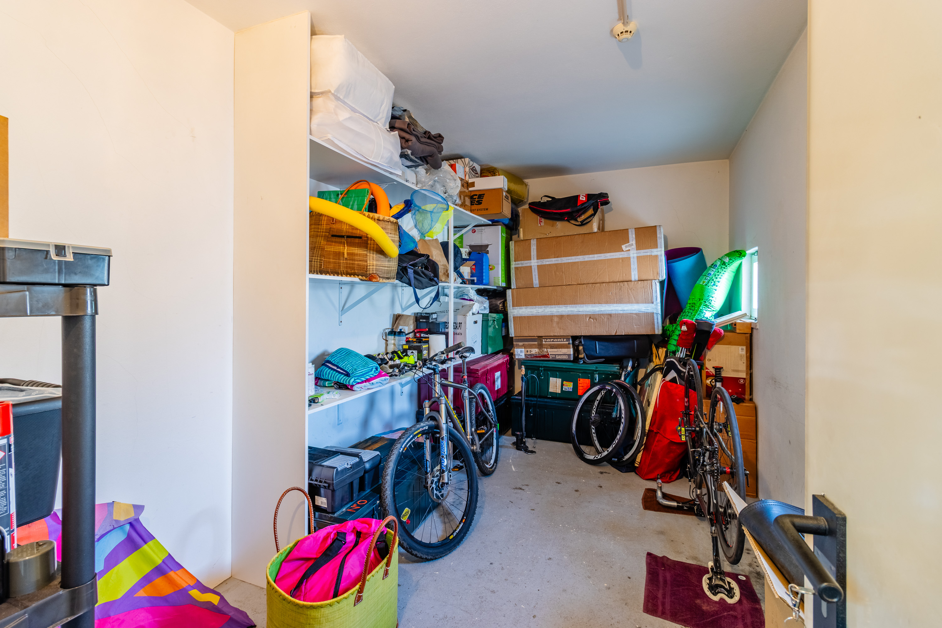 The property also includes a private parking space in the basement and a good-sized storage room.