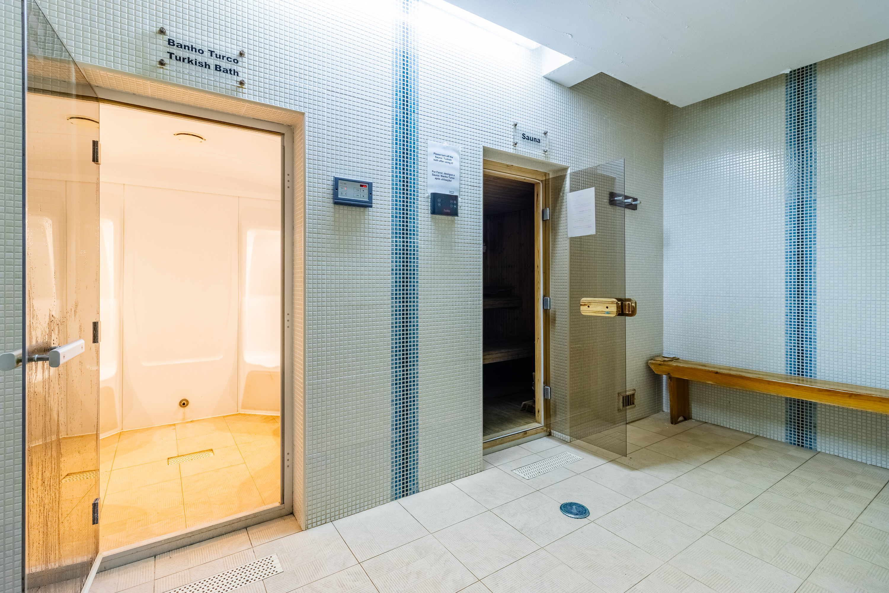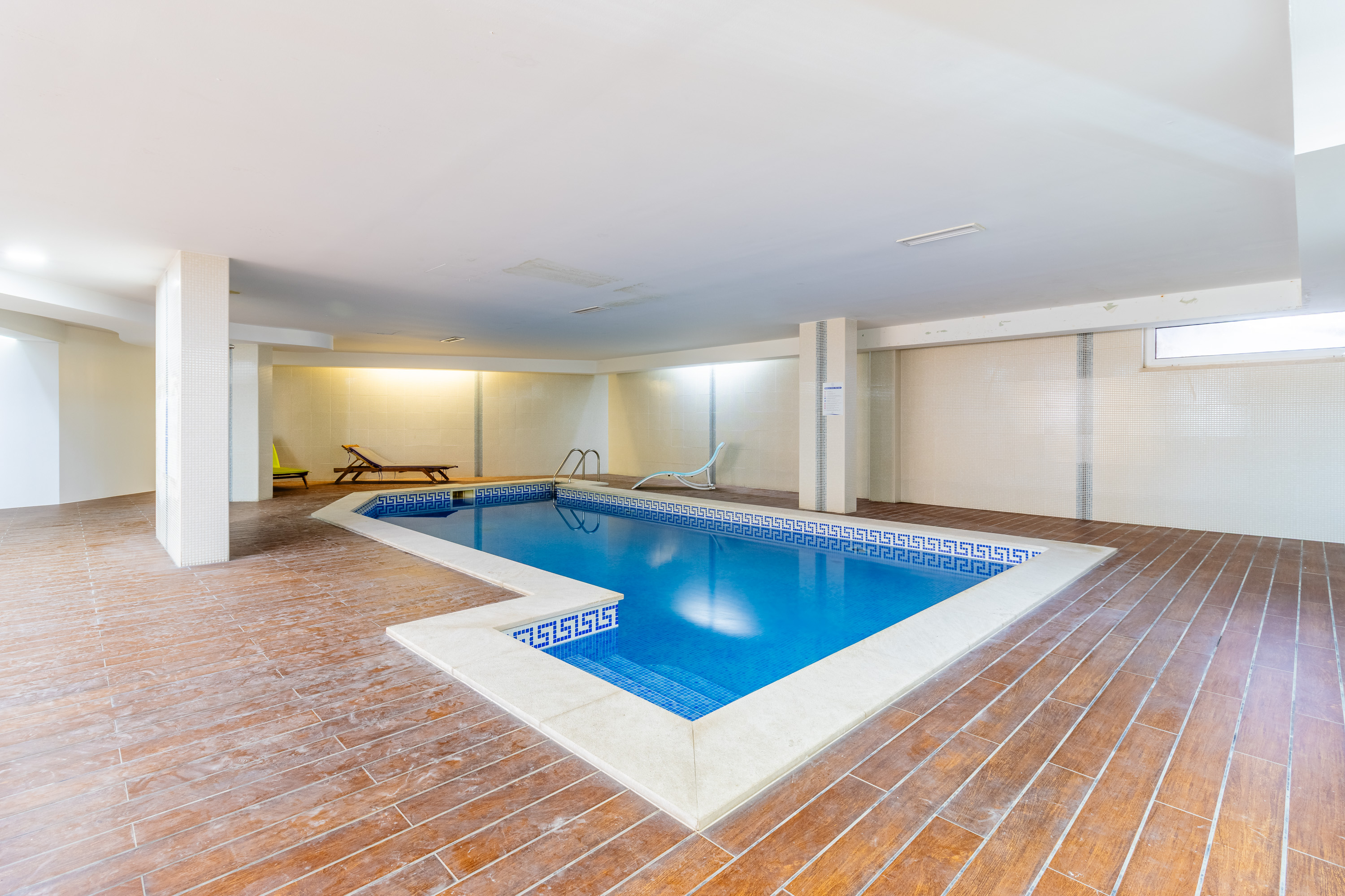 Residents benefit from excellent on-site facilities, including an indoor heated swimming pool, gym, and Turkish bath.