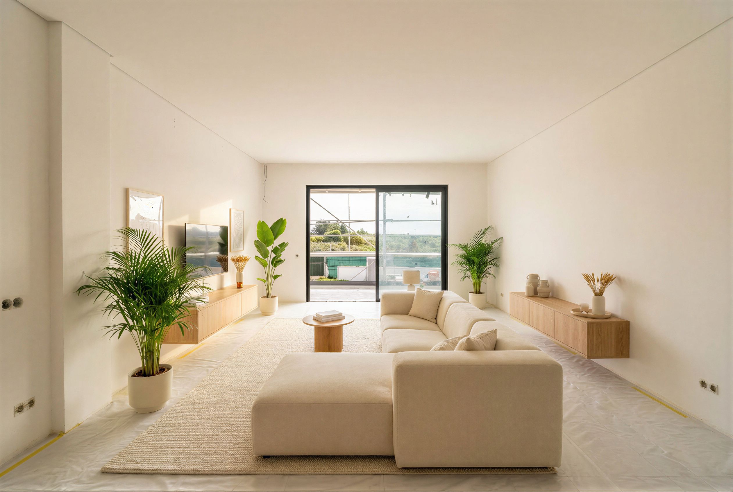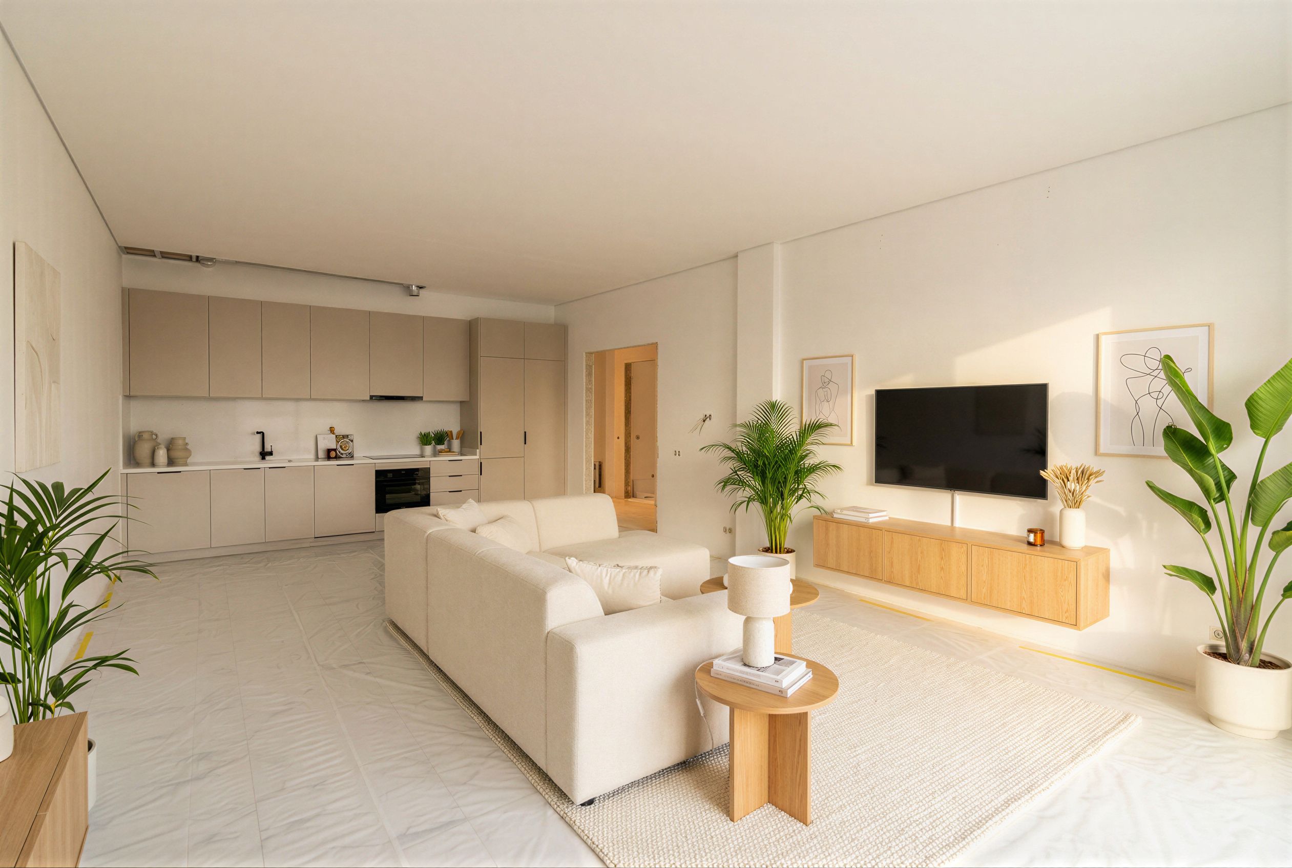 Each apartment features a contemporary design with spacious interiors, 3m ceilings, and floor-to-ceiling glazing that maximises natural light and Atlantic views. The layout includes three bedrooms, two of which are en-suite, along with fully fitted kitchens equipped with Miele appliances. Comfort is ensured with air conditioning, underfloor heating, and an energy-efficient heat pump system.
