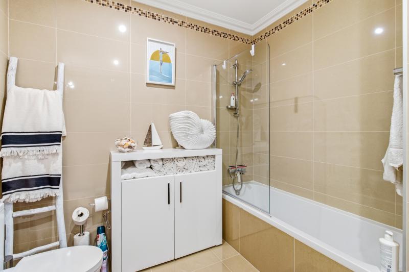On the other side, two large bedrooms with built-in wardrobes, one of which has an en-suite bathroom with bathtub. The second bathroom of the apartment has a walk-in shower, with electric towel rails in both bathrooms.