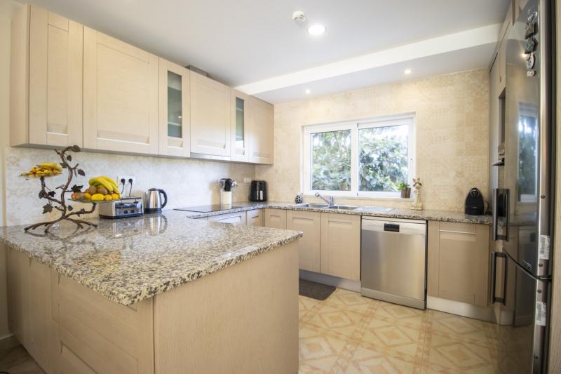 The guesthouse features beautifully manicured grounds that offer privacy around the pool and gardens. The entire property is fully walled and gated, ensuring security. There is ample exterior parking available.