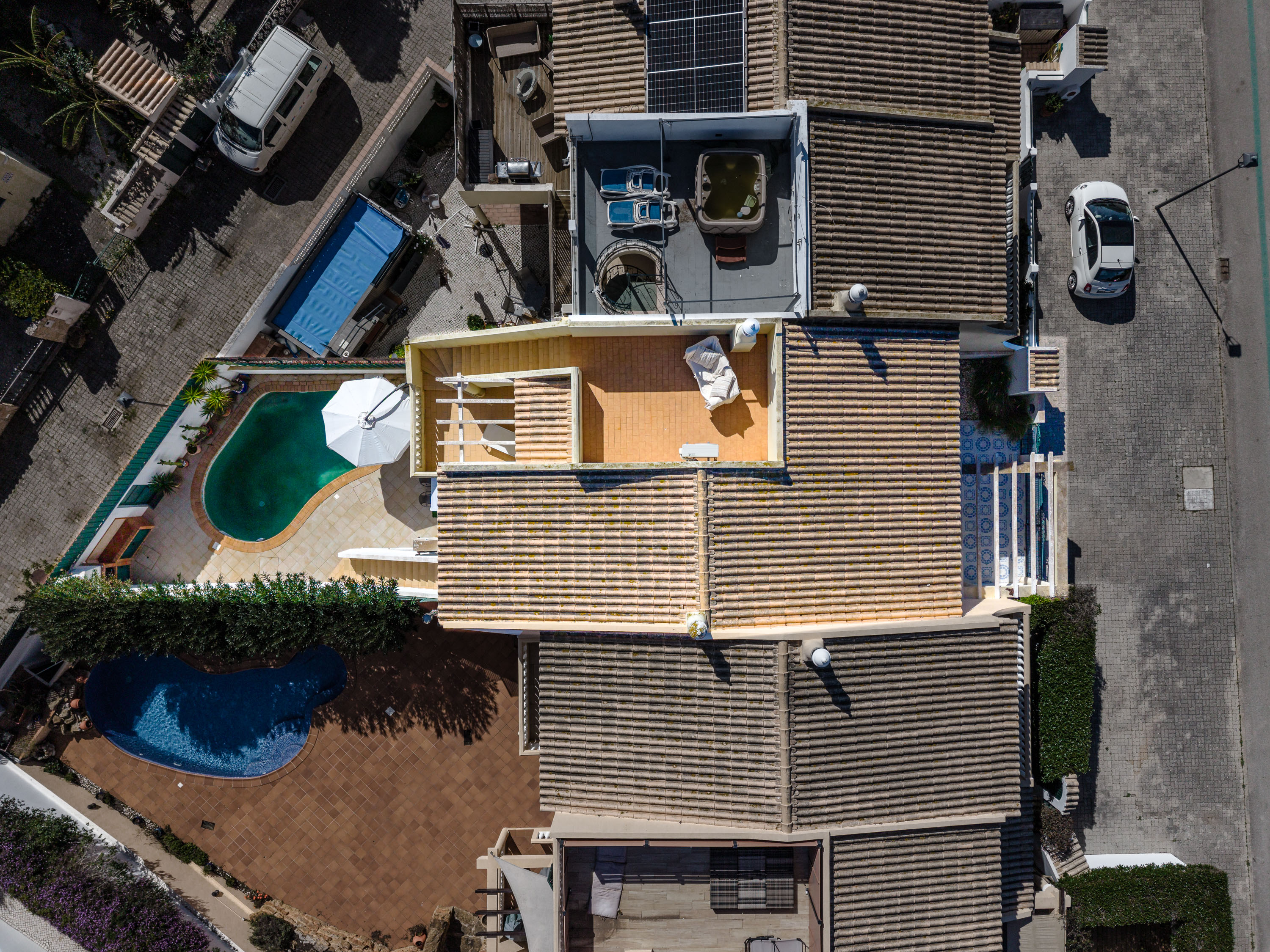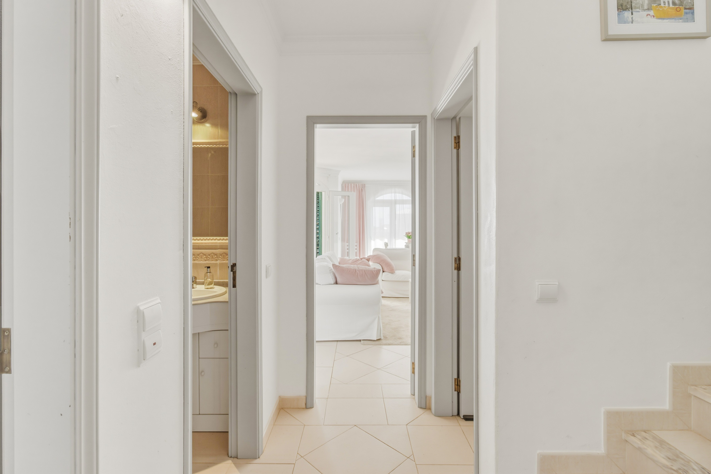 Upstairs, you will find three further spacious bedrooms along with a family bathroom. There is a West facing balcony on this level where you can make the most of the evening sun. This level also provides access to the roof terrace where you can enjoy stunning panoramic sea views — the perfect setting for sunset drinks or relaxing in the Algarve sunshine.
