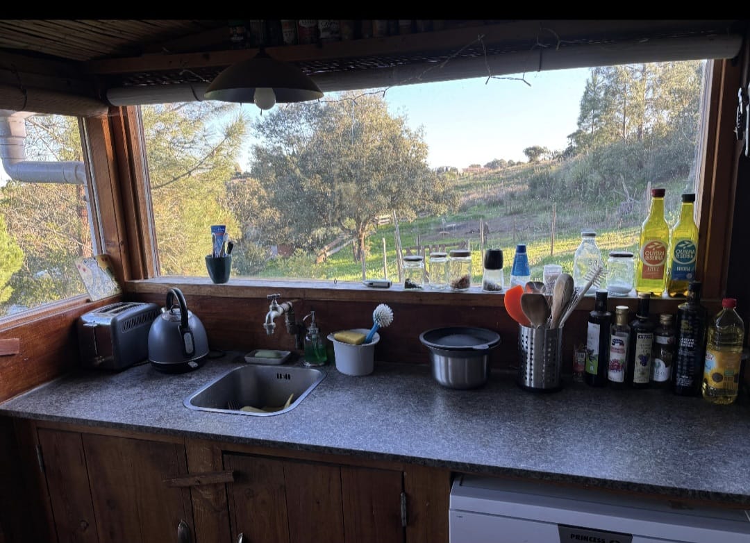 Surrounded by open landscapes and with no close neighbours, the land includes several outbuildings positioned across fertile terrain rich with fruit and cork trees. Water is a major highlight here, with mains supply, a private well, and a natural lake all within the grounds, alongside electricity and good internet access.