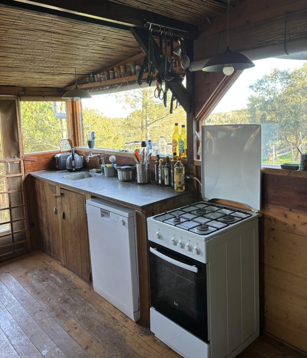 Within the plot sits a registered stone-built outbuilding of approximately 55 m², already fitted with a bathroom and suitable for conversion into a studio, workshop, storage space, or stable. There is also a traditional cottage with terrace and garden, and a third dwelling designed in a treehouse style and integrated into the setting.
