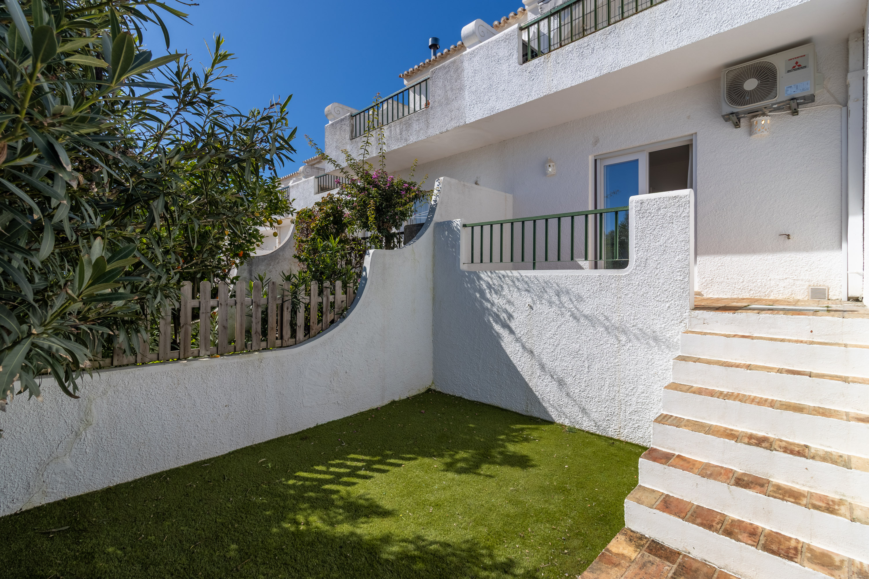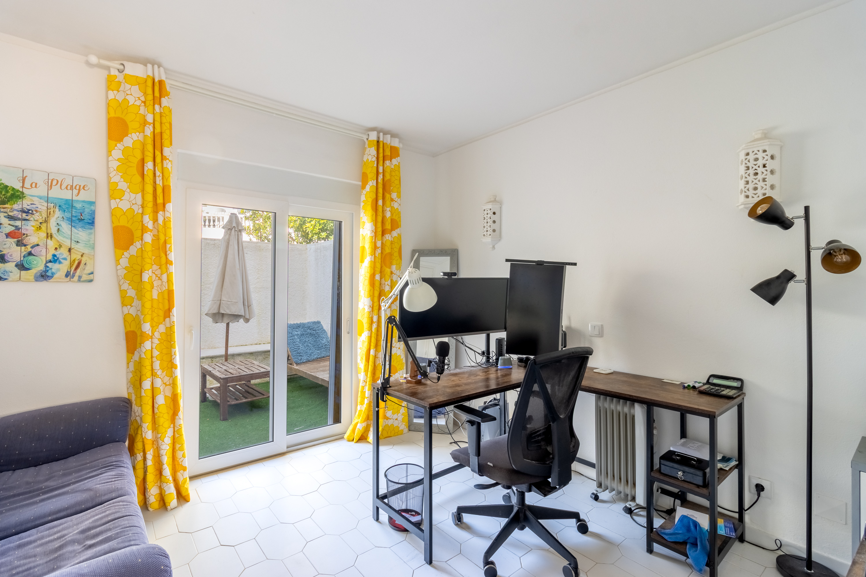 Downstairs, you will find the two bedrooms. The main bedroom opens directly onto a private garden area, complete with a gate for convenient access — ideal for outdoor relaxation or easy entry after a day at the beach. The second bedroom, currently used as a study, also benefits from its own rear terrace with a lovely courtyard feel, offering a peaceful and private outdoor space. This level also includes a storage area as well as additional under-stairs storage, ensuring practical living alongside comfort and style.