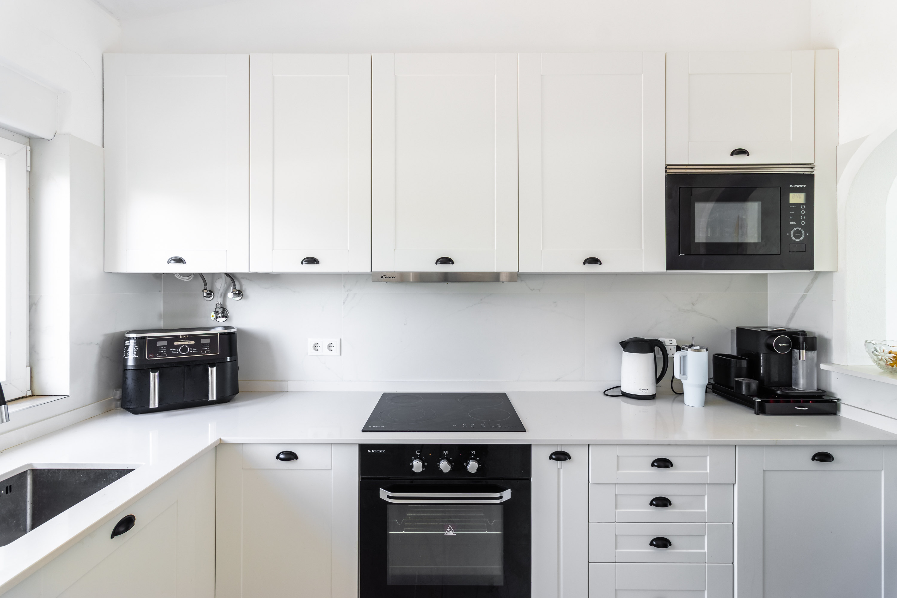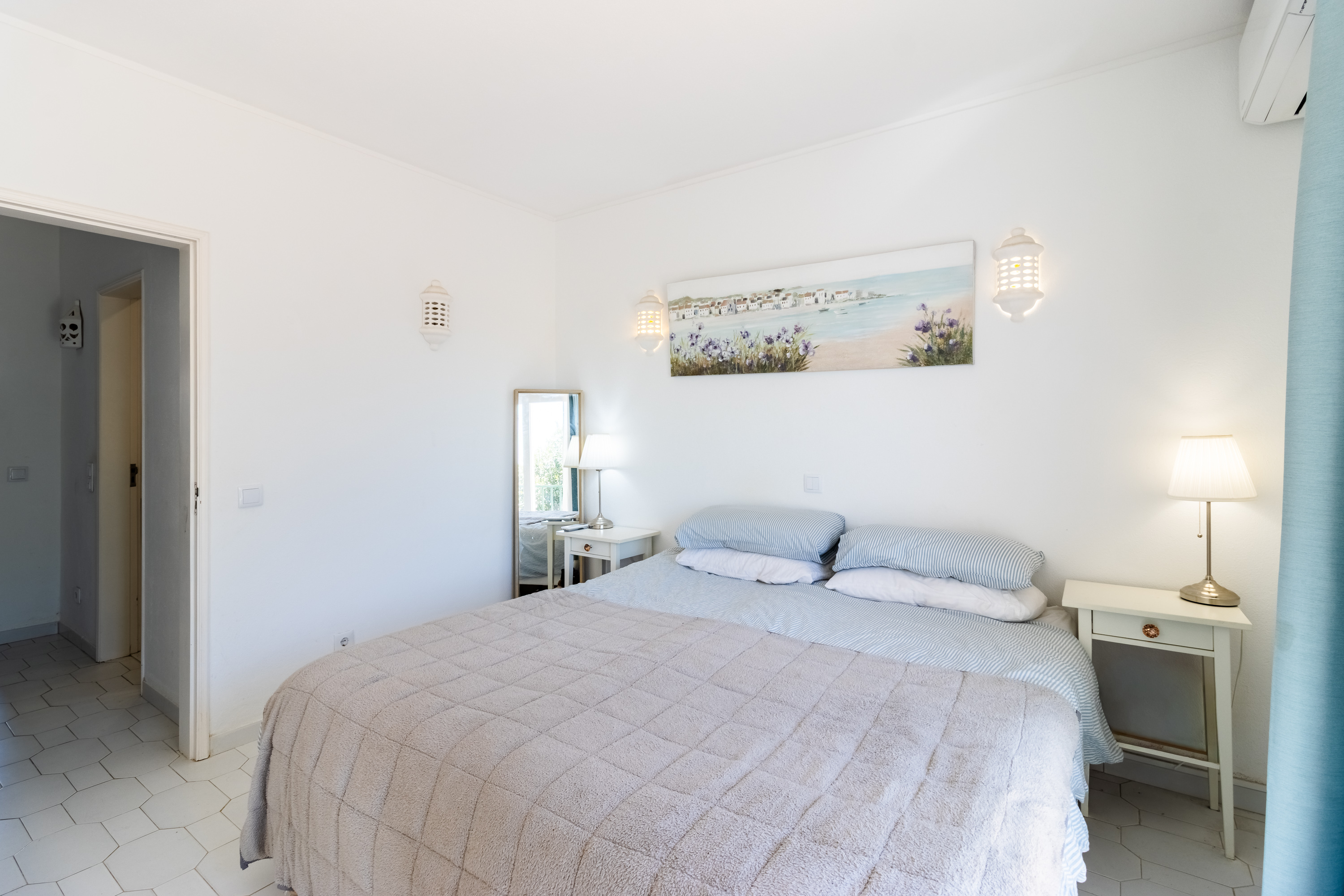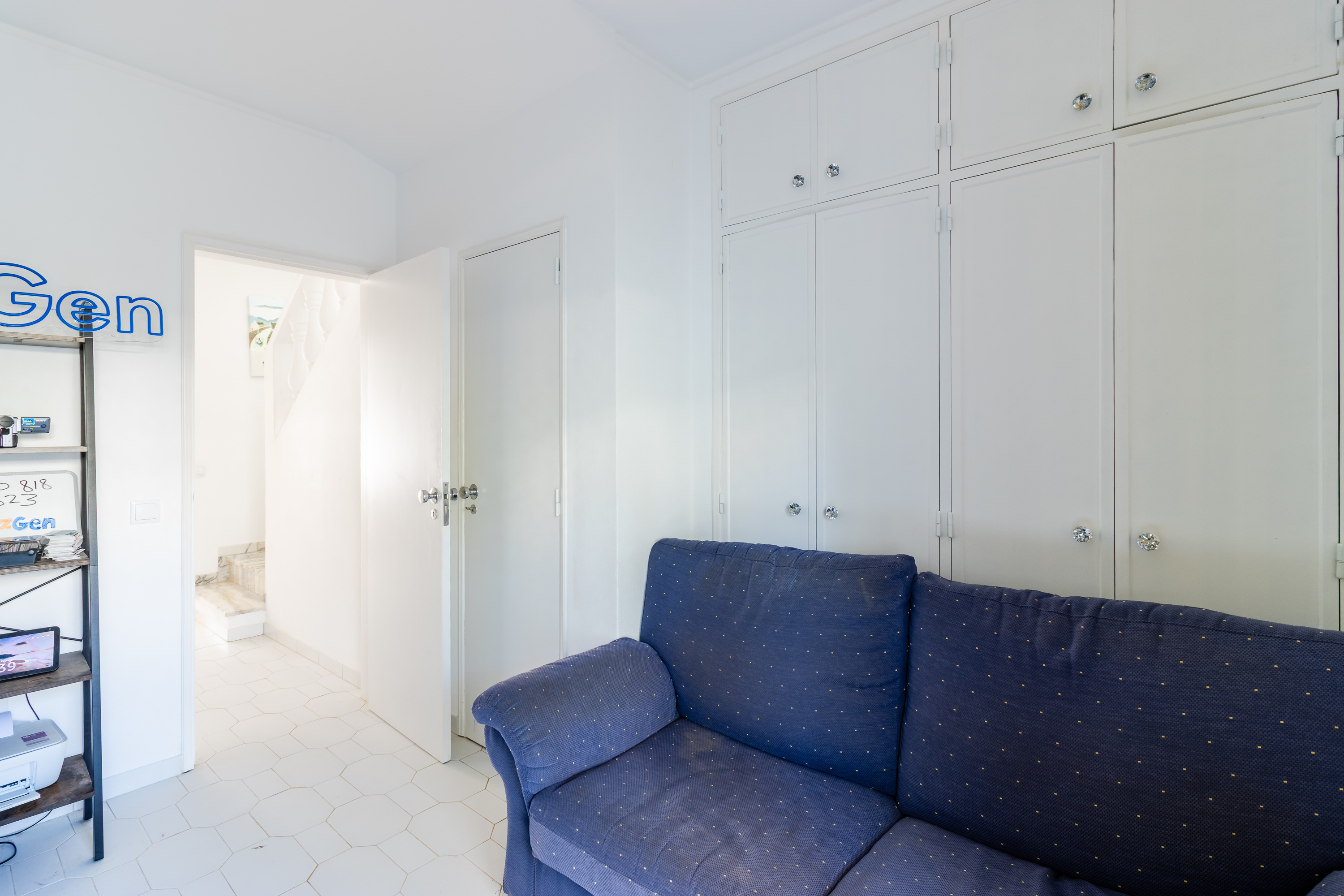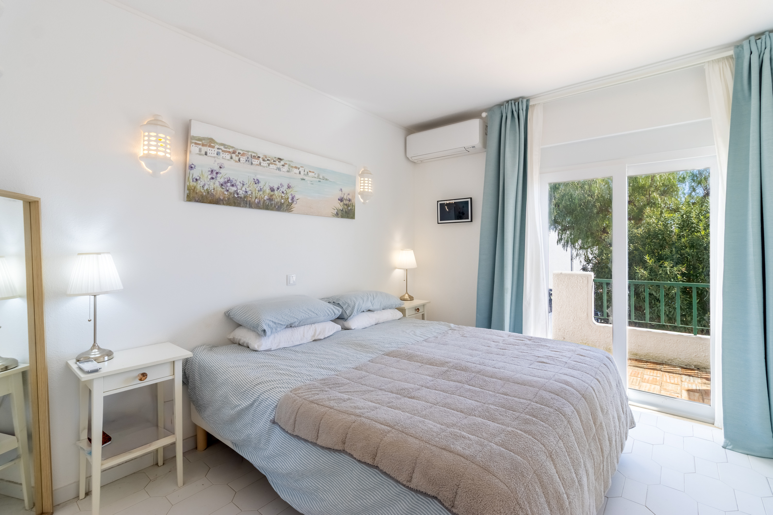 A few steps lead up to the entrance and into the bright, open-plan living, dining and kitchen area. This entire space has been fully modernised, creating a contemporary and welcoming atmosphere. The layout flows effortlessly, making it ideal for both relaxing and entertaining. From this level, a charming balcony provides a beautiful sea view across to Praia da Luz — the perfect spot for morning coffee or evening drinks while enjoying the Algarve sunshine.