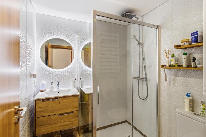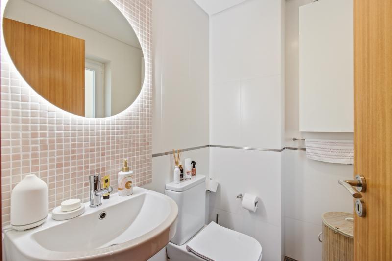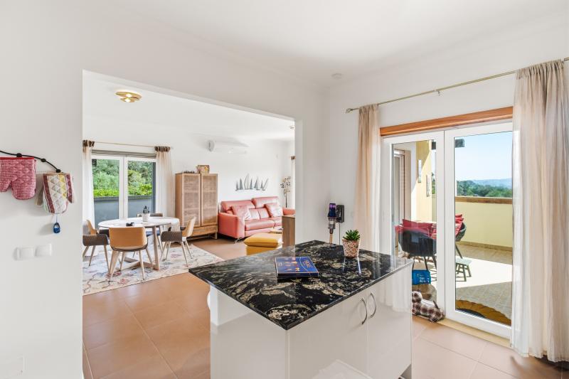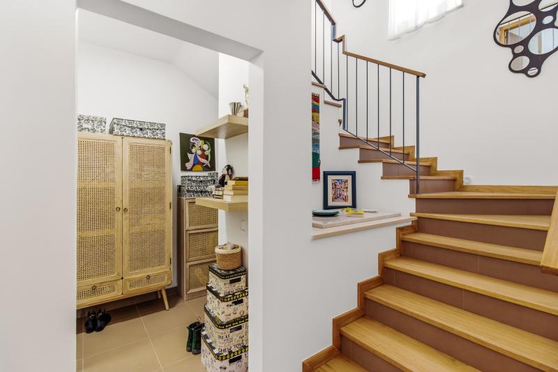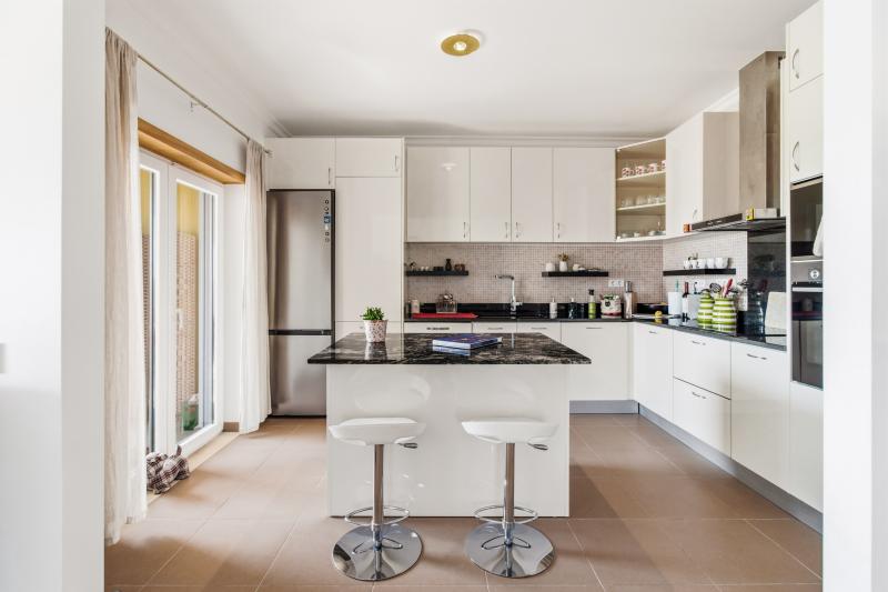 The newly upgraded kitchen is both stylish and practical, featuring quality Bosch appliances, and a central island that adds valuable storage and workspace. It also has to the living room terrace. Off the dining area, there is a second terrace, with a barbeque. There is also a guest bathroom on this level.