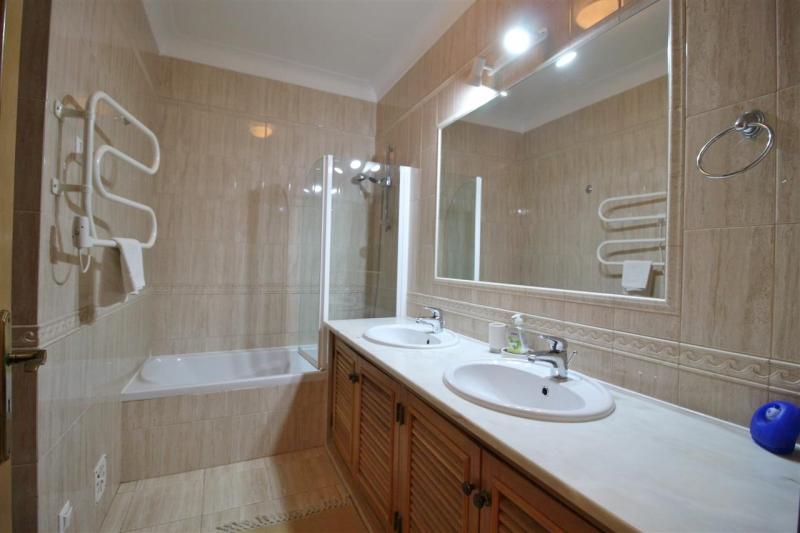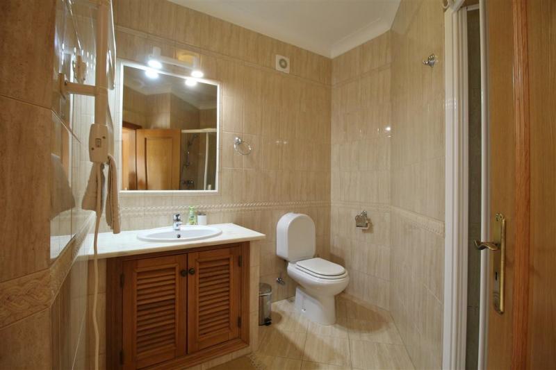 The top floor offers 3 double bedrooms with built-in wardrobes and 2 bathrooms, one is en-suite. The master bedroom has a lovely view of the pool terrace all the way to the golf course.