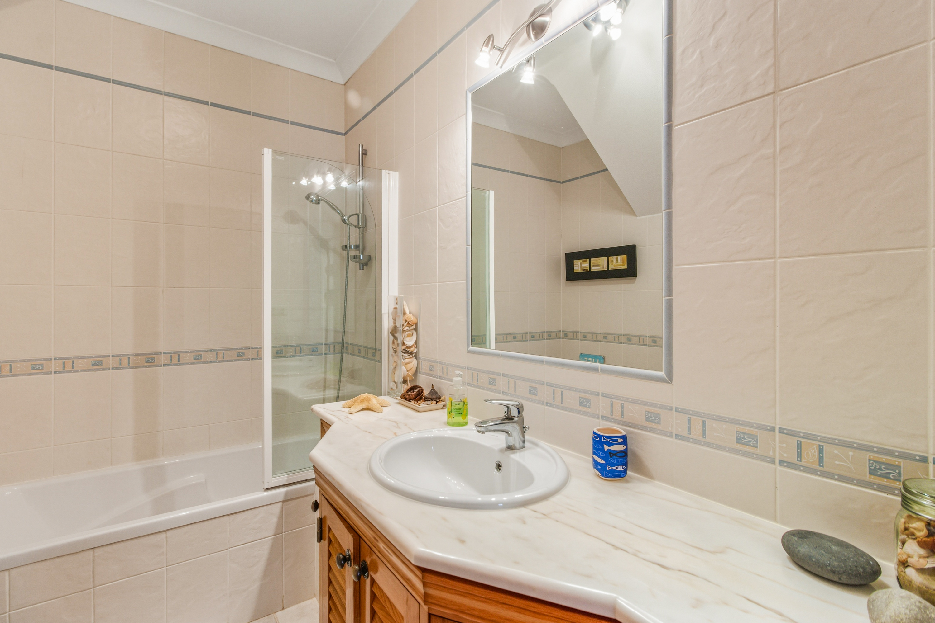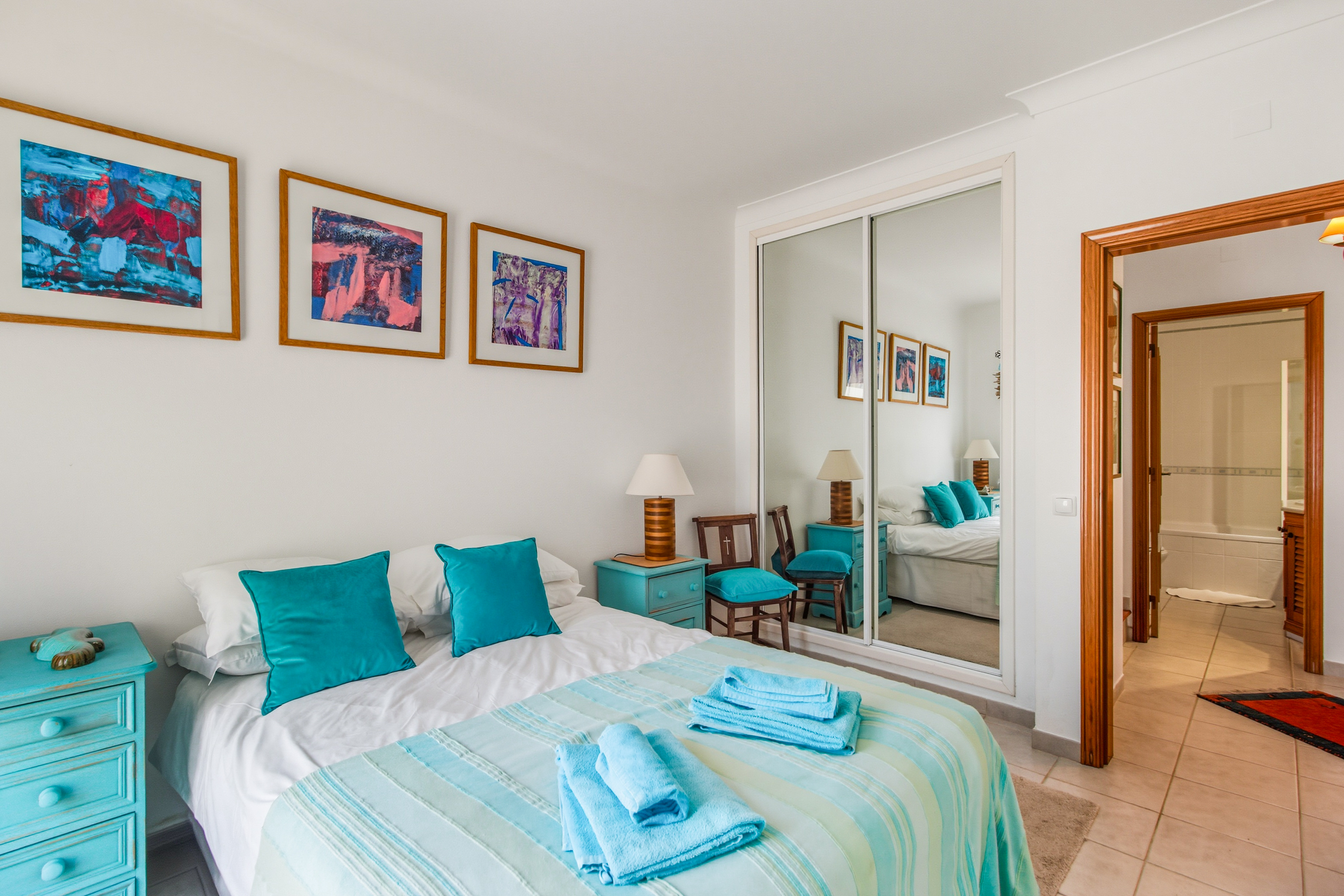 The lower level comprises two bedrooms. The master suite includes a dressing area and an en-suite bathroom, while the second bedroom has access to a separate family bathroom. Both bedrooms open directly onto a private terrace. Air conditioning units with heating and cooling functions are fitted in the lounge and both bedrooms for year-round comfort.