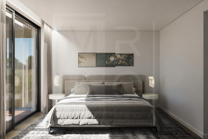 The floors of this villa are made with high-quality materials, enhancing the modern aesthetics of each space. The living room is covered with polished concrete, adding a contemporary and sophisticated touch, while the bedrooms feature wooden parquet, bringing warmth and comfort.