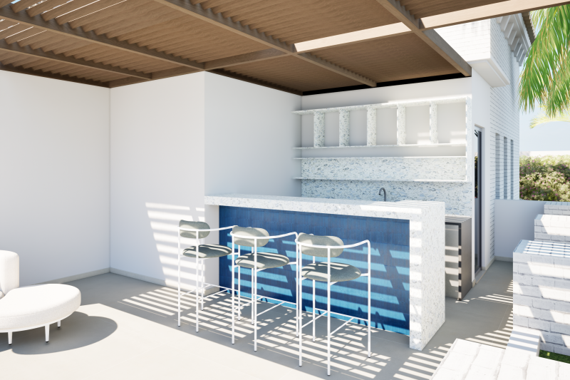 Upstairs, you’ll find two bedrooms with en-suite bathrooms. The main one has access to a large terrace, and walk-in closet.