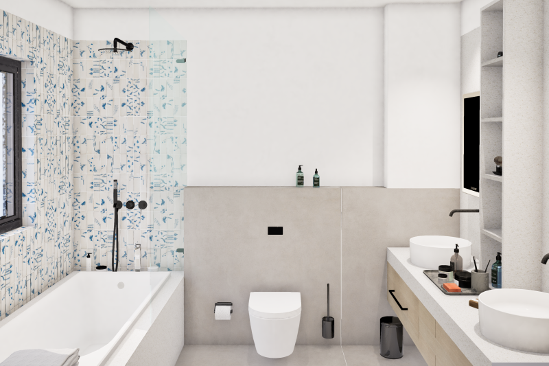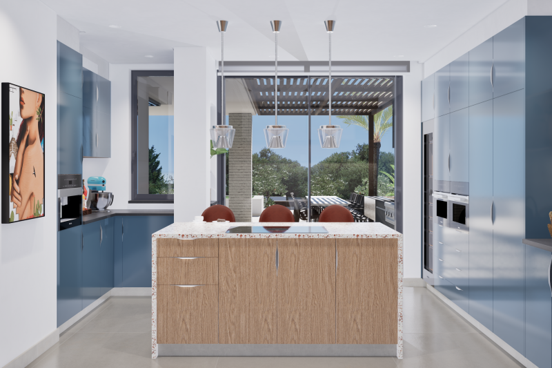 Inside, you’ll find ceramic, stone, or wood flooring, Bosch kitchen appliances, Grohe chrome faucets, and matte white lacquered carpentry. Other highlights include a central aspiration system, high-security entrance door, double glazing, Fiber optic internet, and satellite TV.