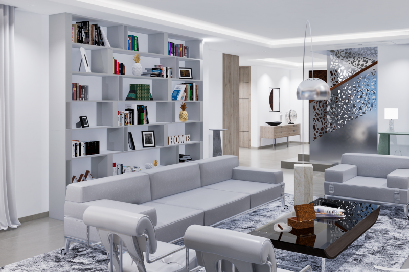 Heading down to the basement, you’ll find practical spaces like a garage for up to 6 cars, a laundry room, and a flexible space for an office or extra bedroom, with a bathroom.