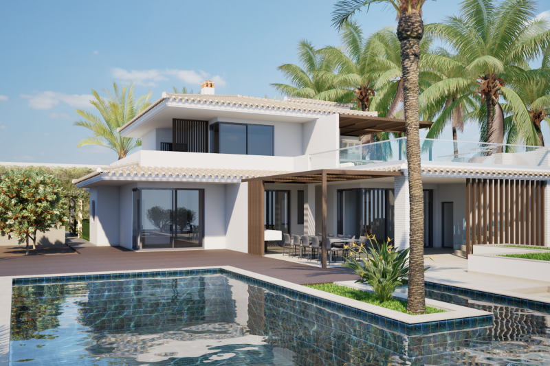 Located in Porto de Mós, Lagos, Algarve, this luxurious villa is currently under construction. It’s conveniently situated just a 10-minute drive from Lagos’ center, the Marina, and Boavista Golf Course. Plus, the famous Porto de Mós Beach is a short walk away.