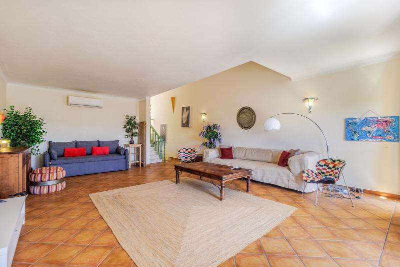 The lower level of the villa, we will find the large basement, converted into extra accommodation, there are 2 more large double bedrooms with a shared bathroom and an open plan living and kitchen area and a large storage room. The lower level is where we can find the gardens, pool area and decking terraced areas.