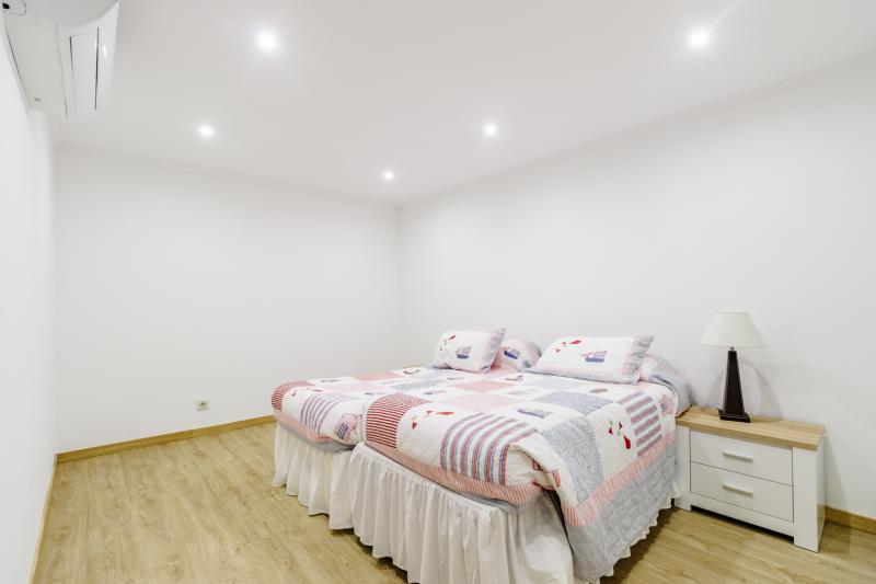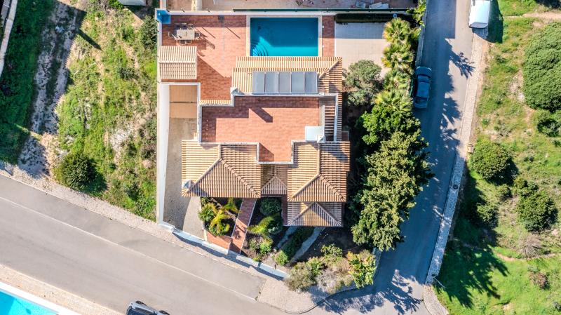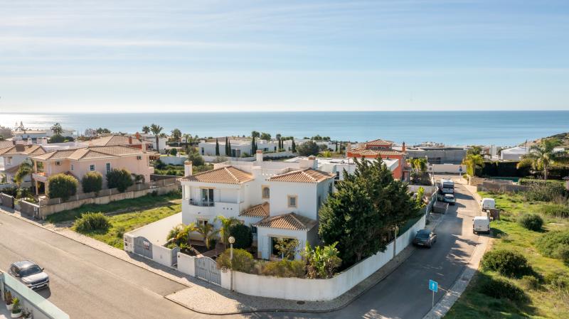 A fantastic walled property in a quiet exclusive area of Porto de Mos. The villa covers four floors. Electric gates lead to a double garage with an electric roller door and to the external entrance to the basement apartment.
