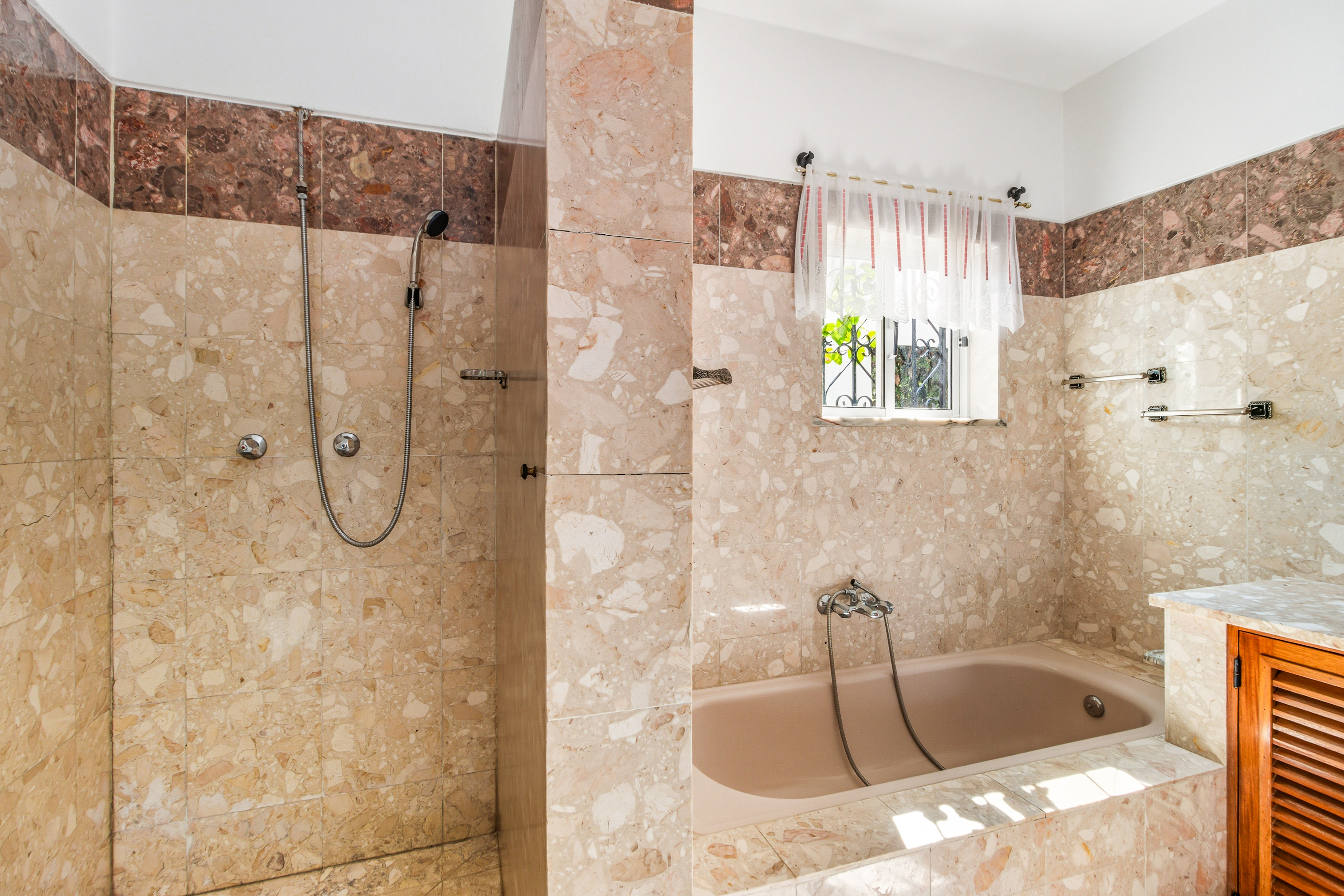 The main house, with its own private entrance, includes 3 bedrooms and 2 bathrooms, one of them en-suite. The living room is spacious, and both the lounge and master bedroom open directly onto the terrace garden, giving a real sense of light and space. This part of the home works perfectly as a main residence or holiday escape, but with some modernisation could also generate very attractive long- or short-term rental income.