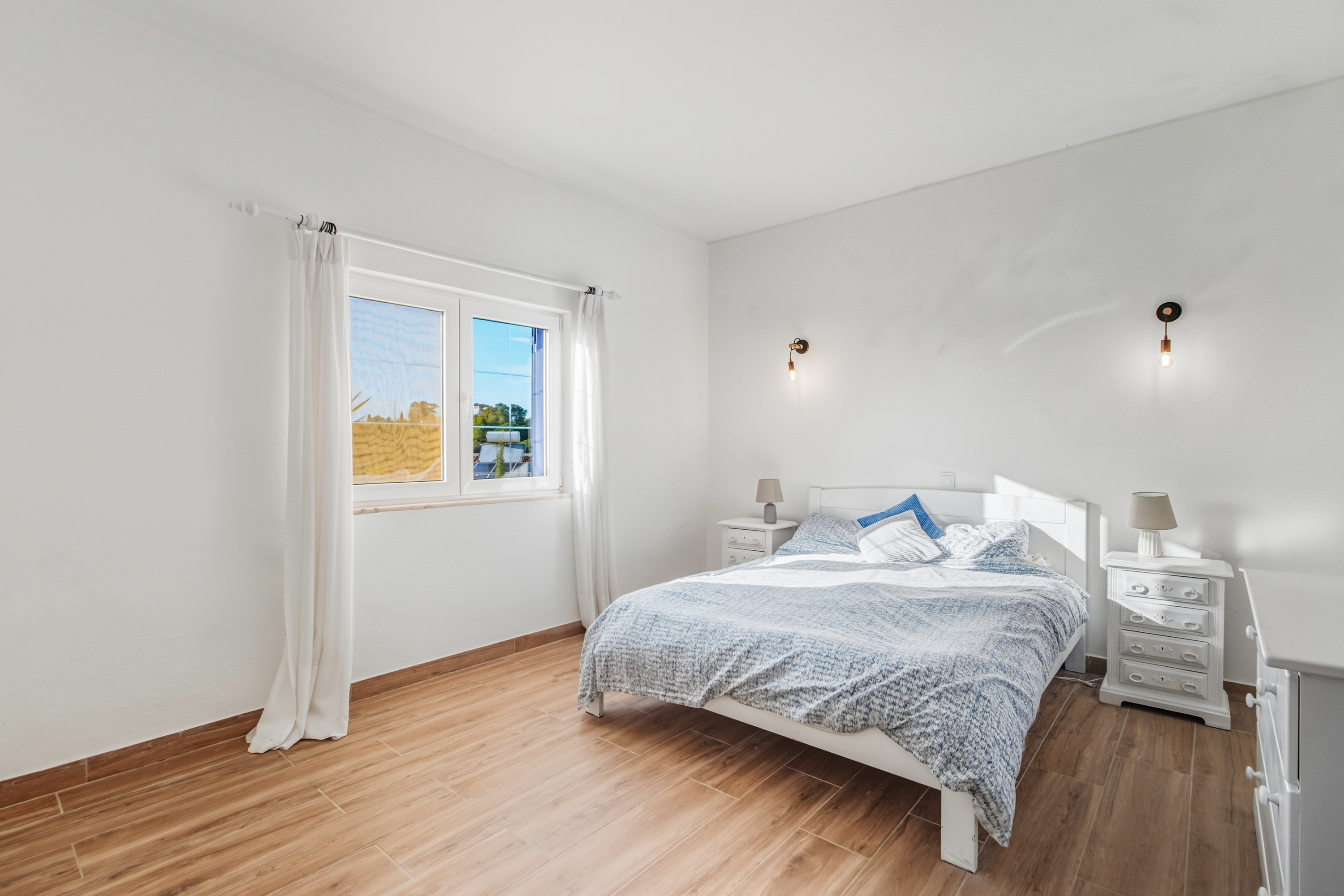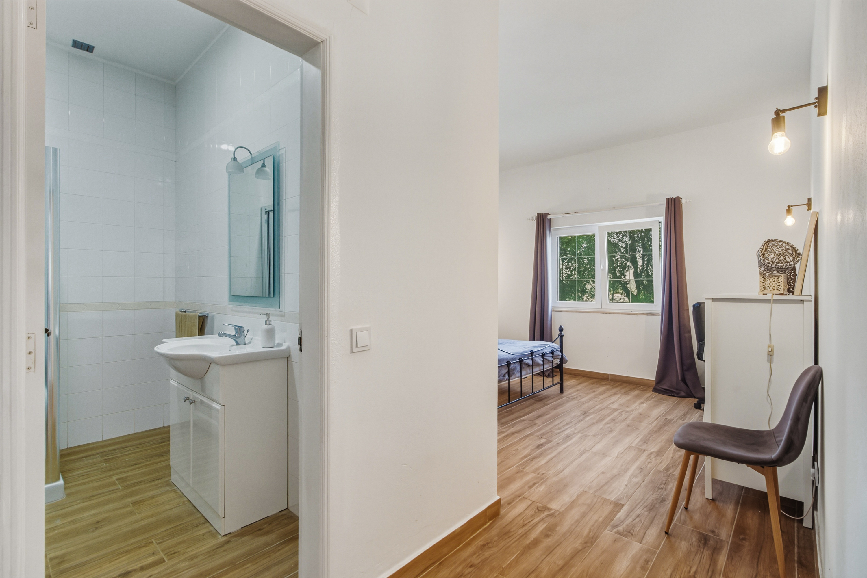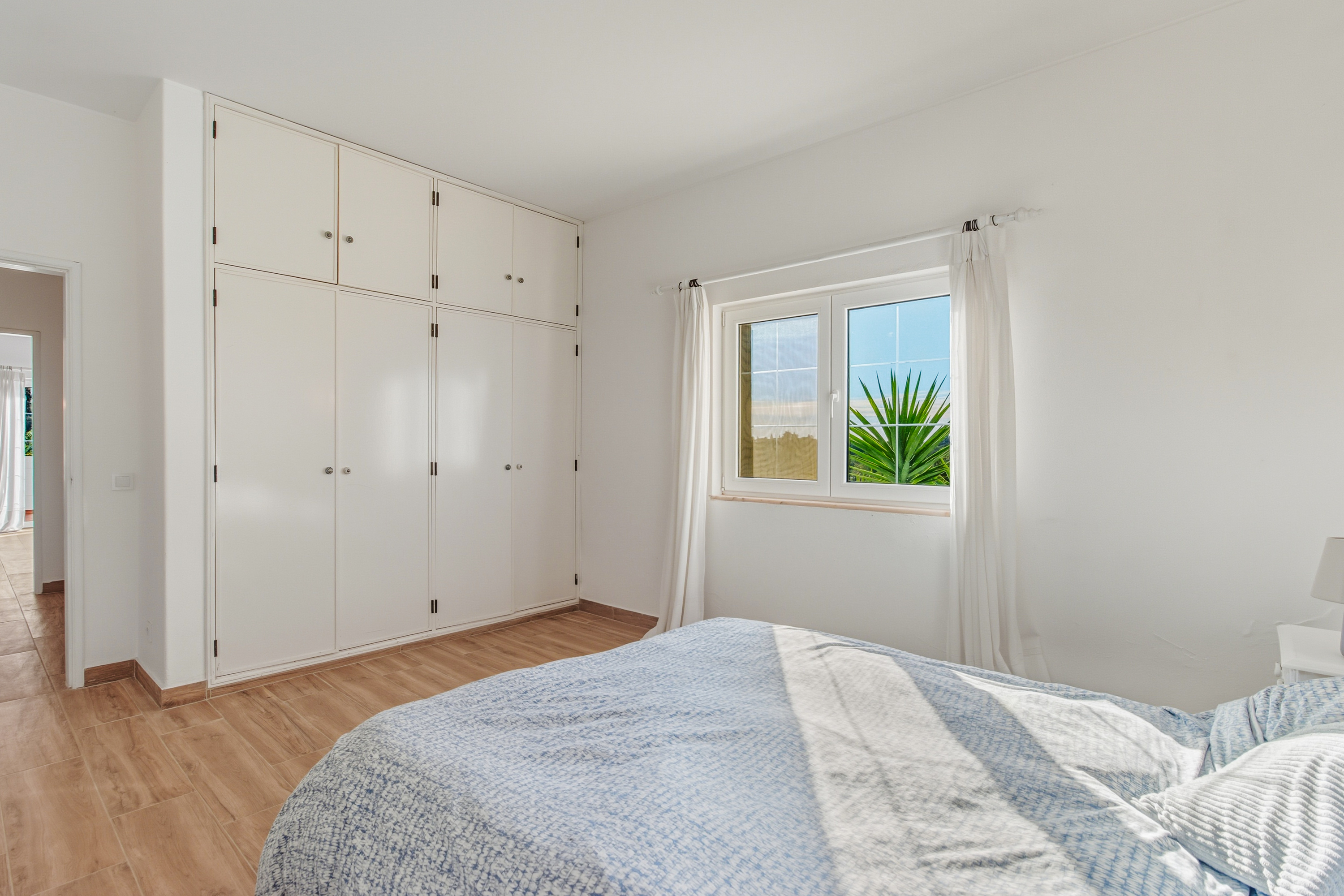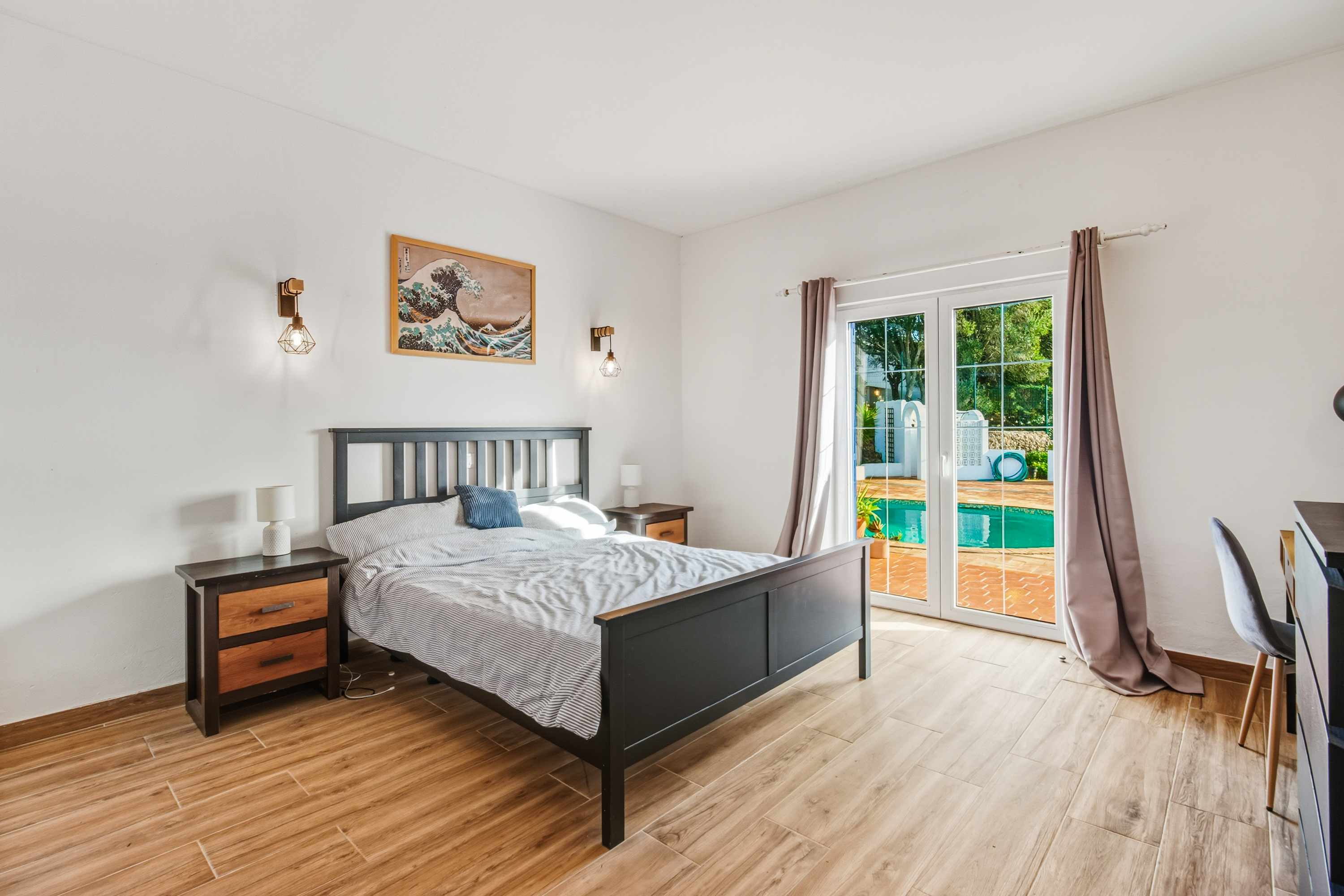 The master suite opens directly onto the pool terrace and includes a private en-suite bathroom with both shower and bathtub. The remaining bedrooms are all spacious, bright, and equipped with fitted wardrobes—one offering access to a private outdoor sitting area.