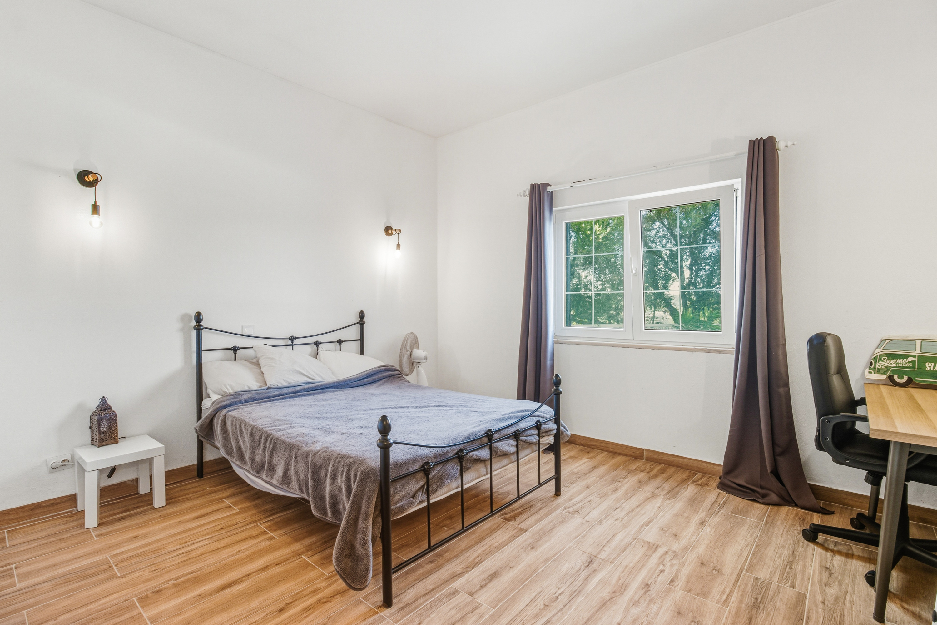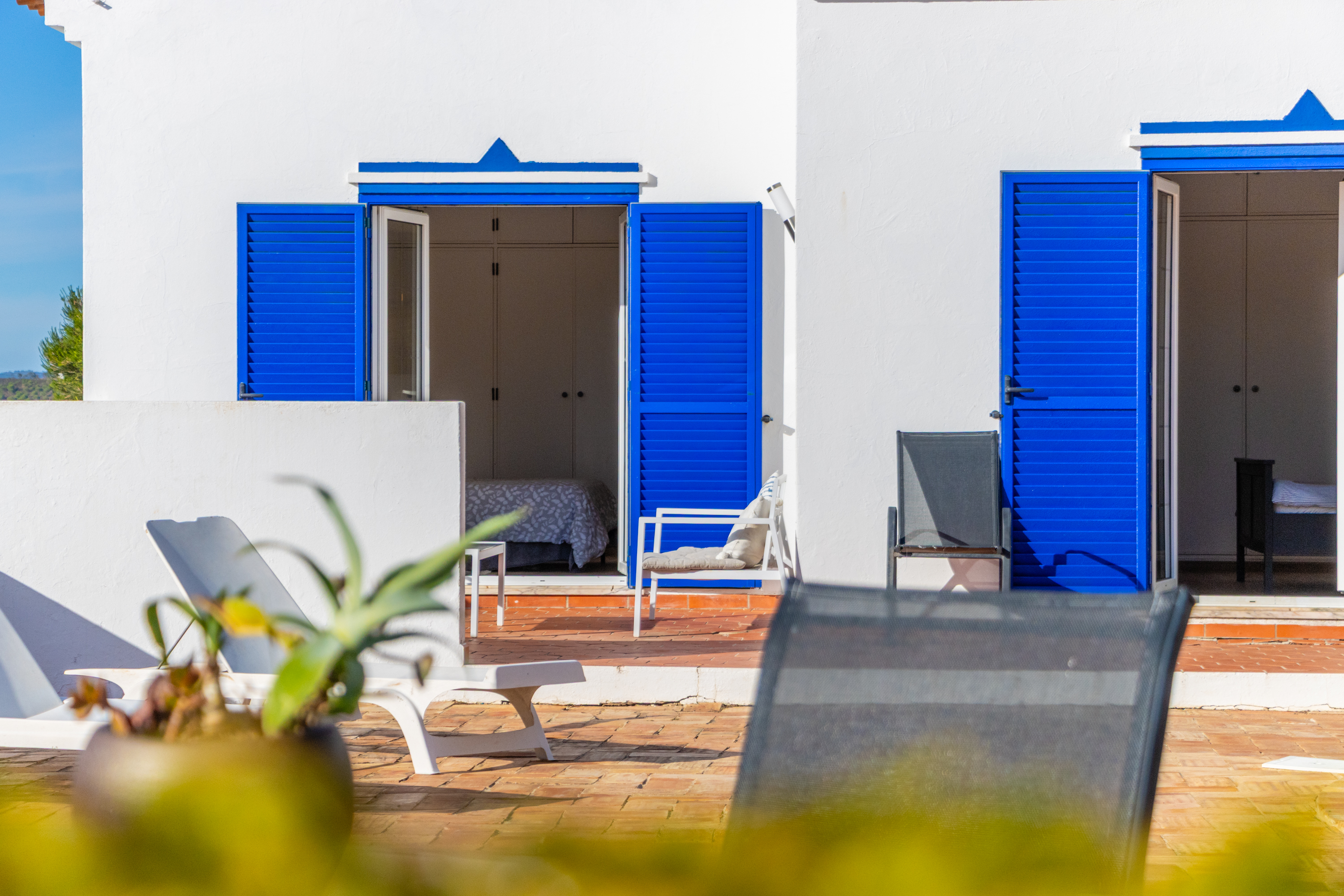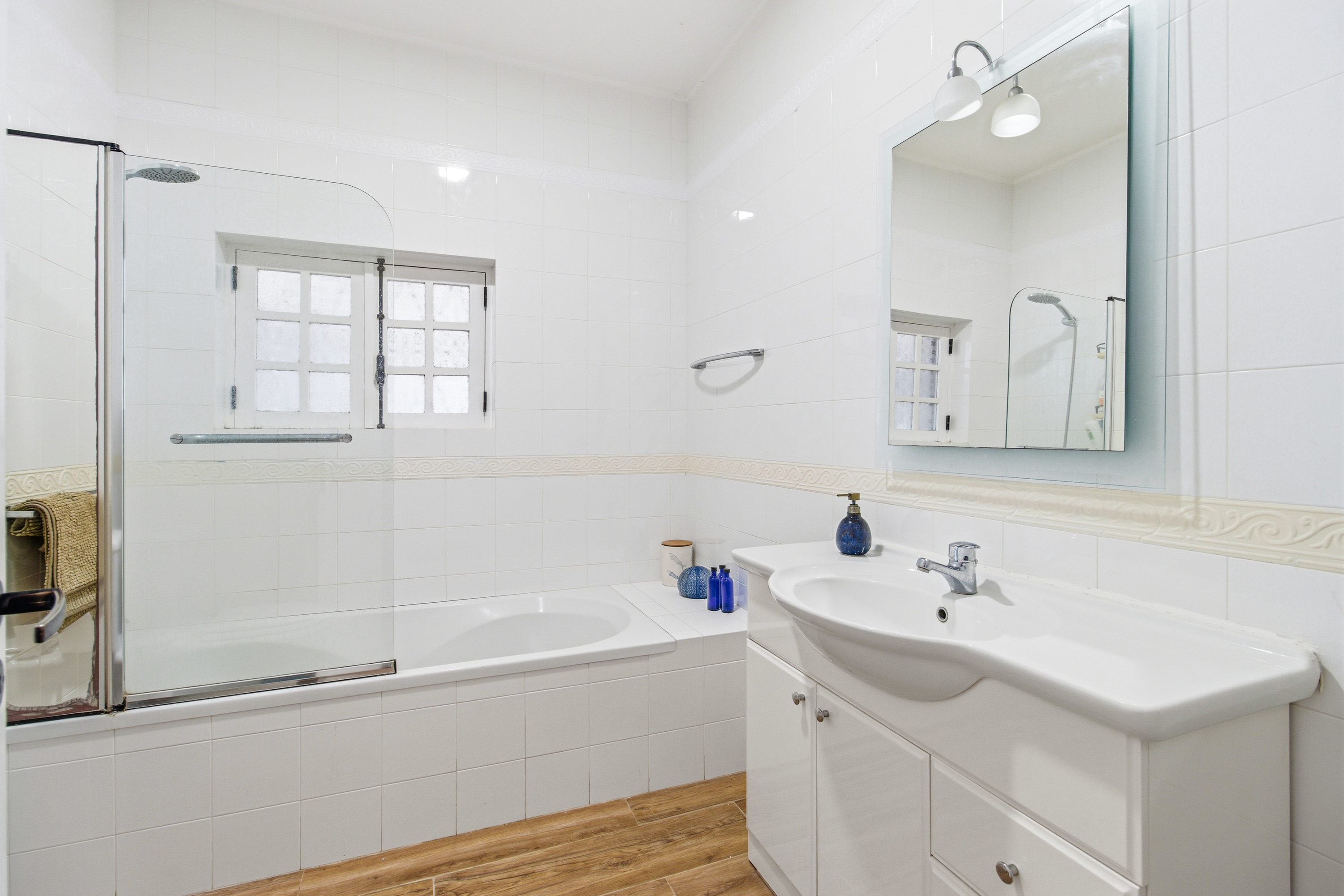 The master suite opens directly onto the pool terrace and includes a private en-suite bathroom with both shower and bathtub. The remaining bedrooms are all spacious, bright, and equipped with fitted wardrobes—one offering access to a private outdoor sitting area.
