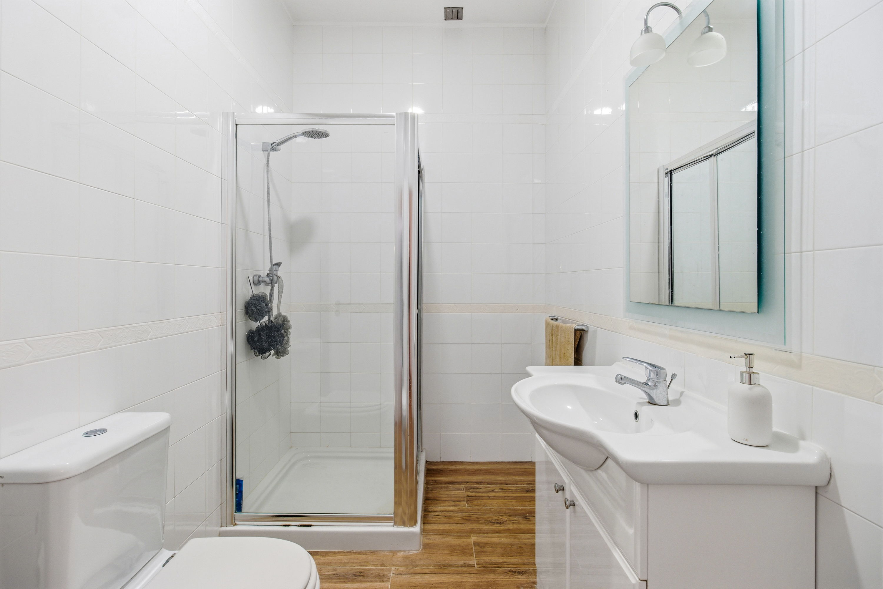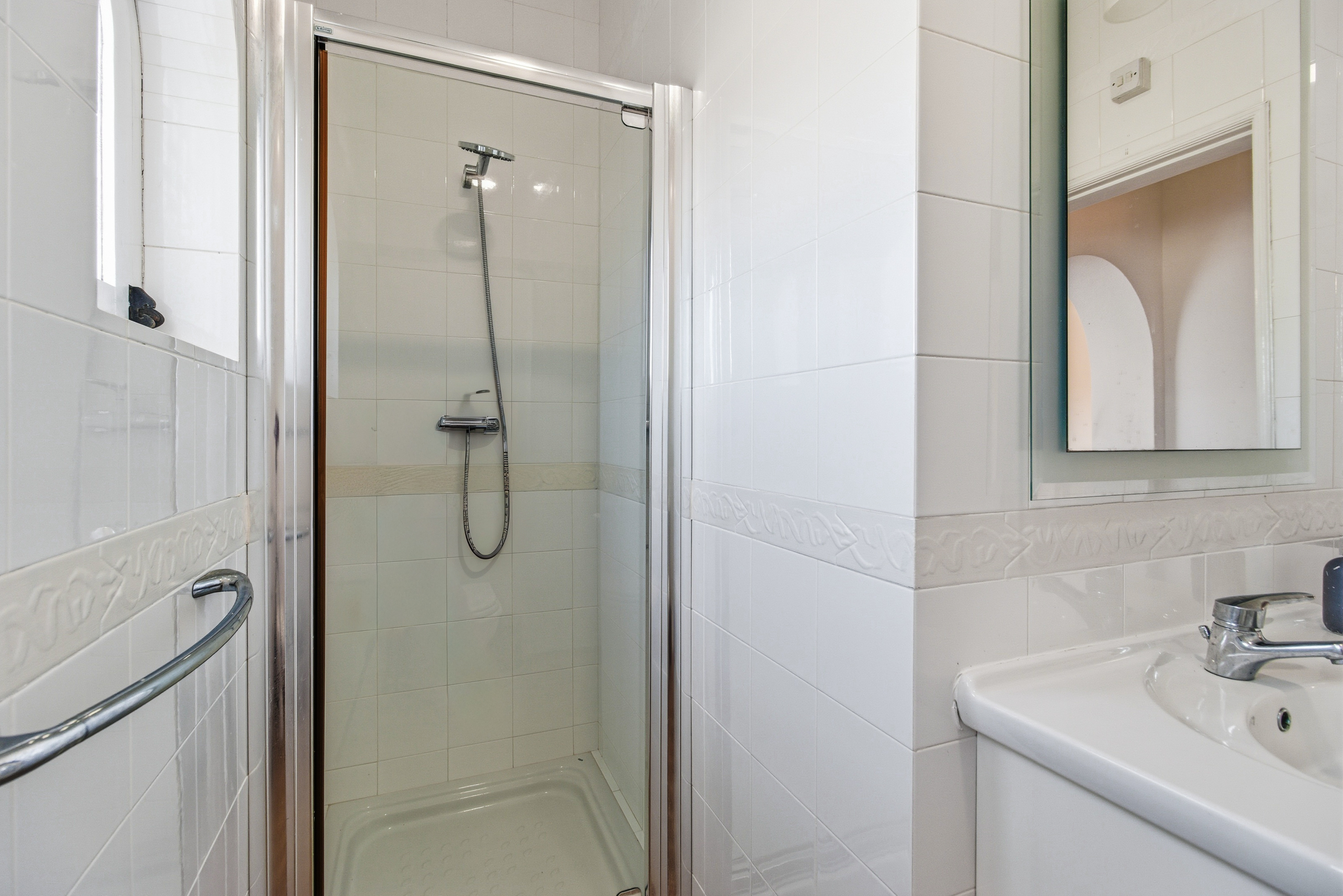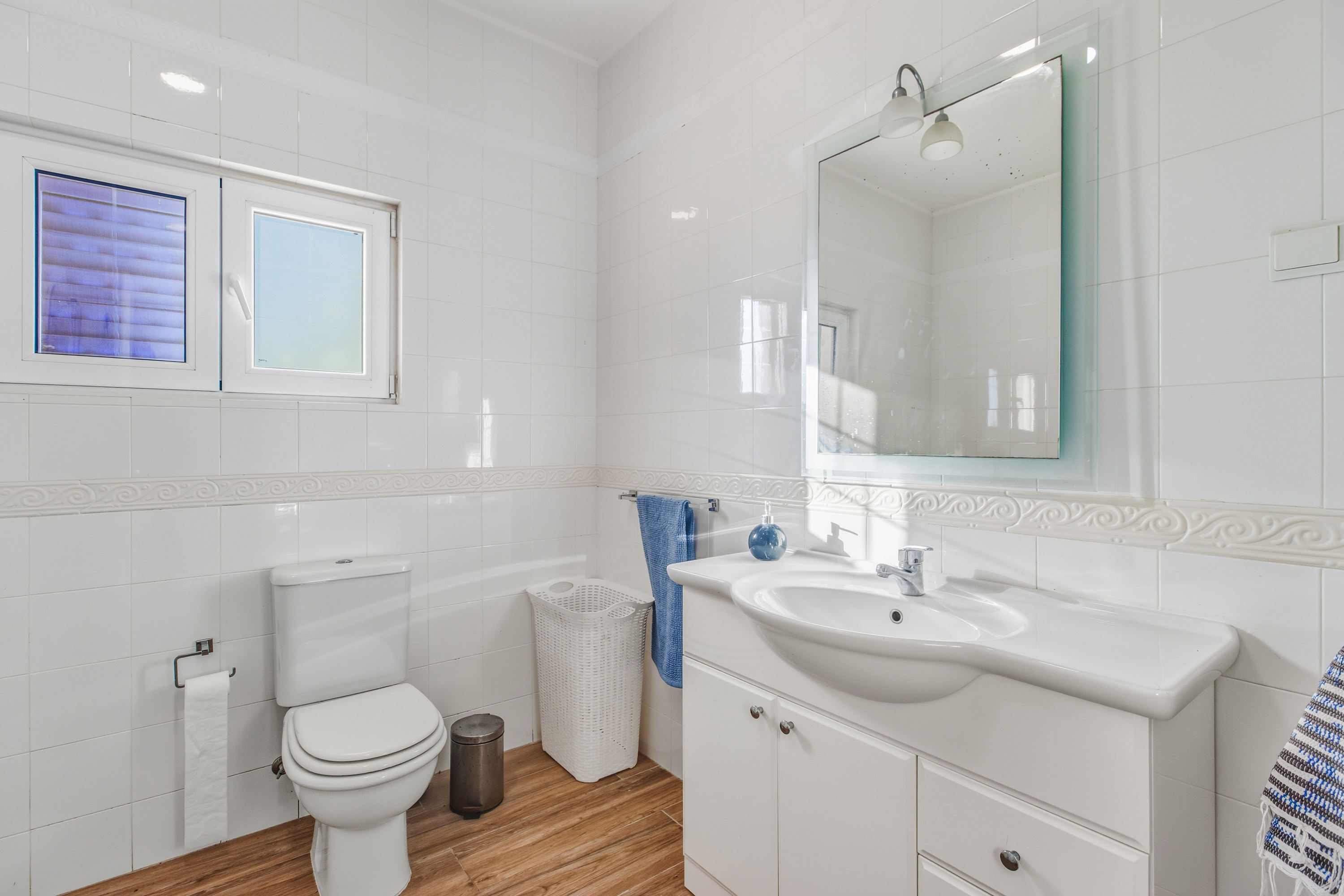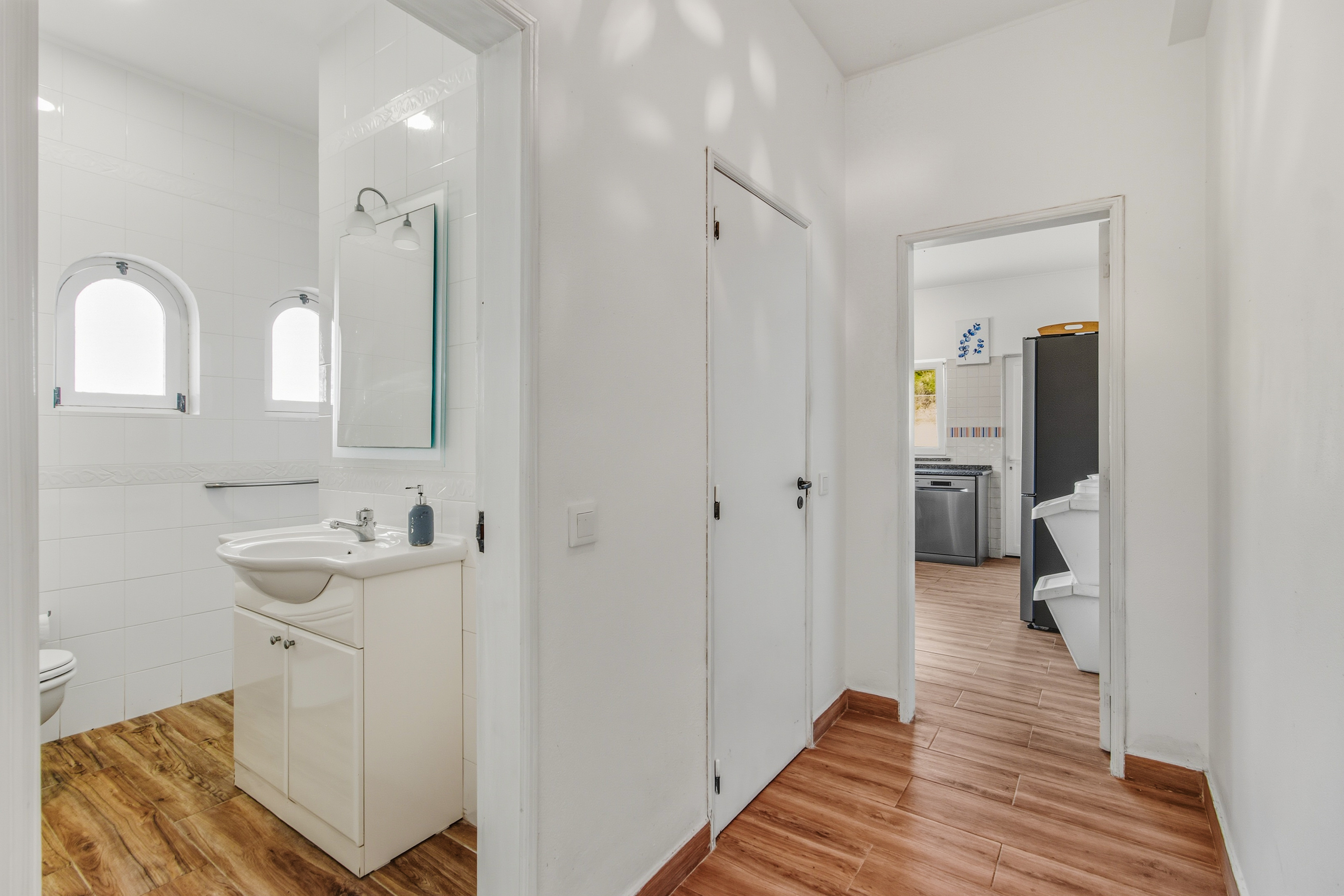 The master suite opens directly onto the pool terrace and includes a private en-suite bathroom with both shower and bathtub. The remaining bedrooms are all spacious, bright, and equipped with fitted wardrobes—one offering access to a private outdoor sitting area.