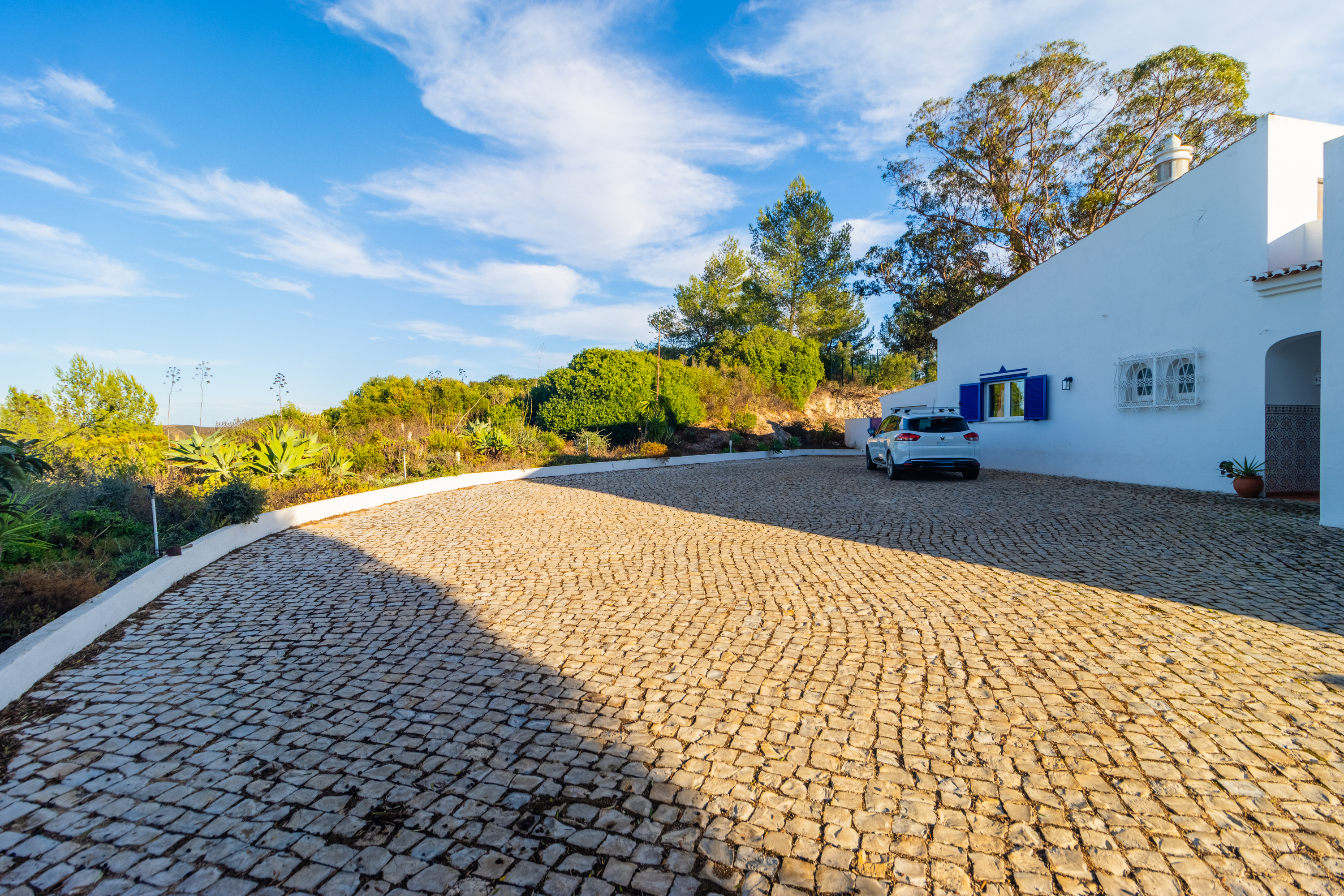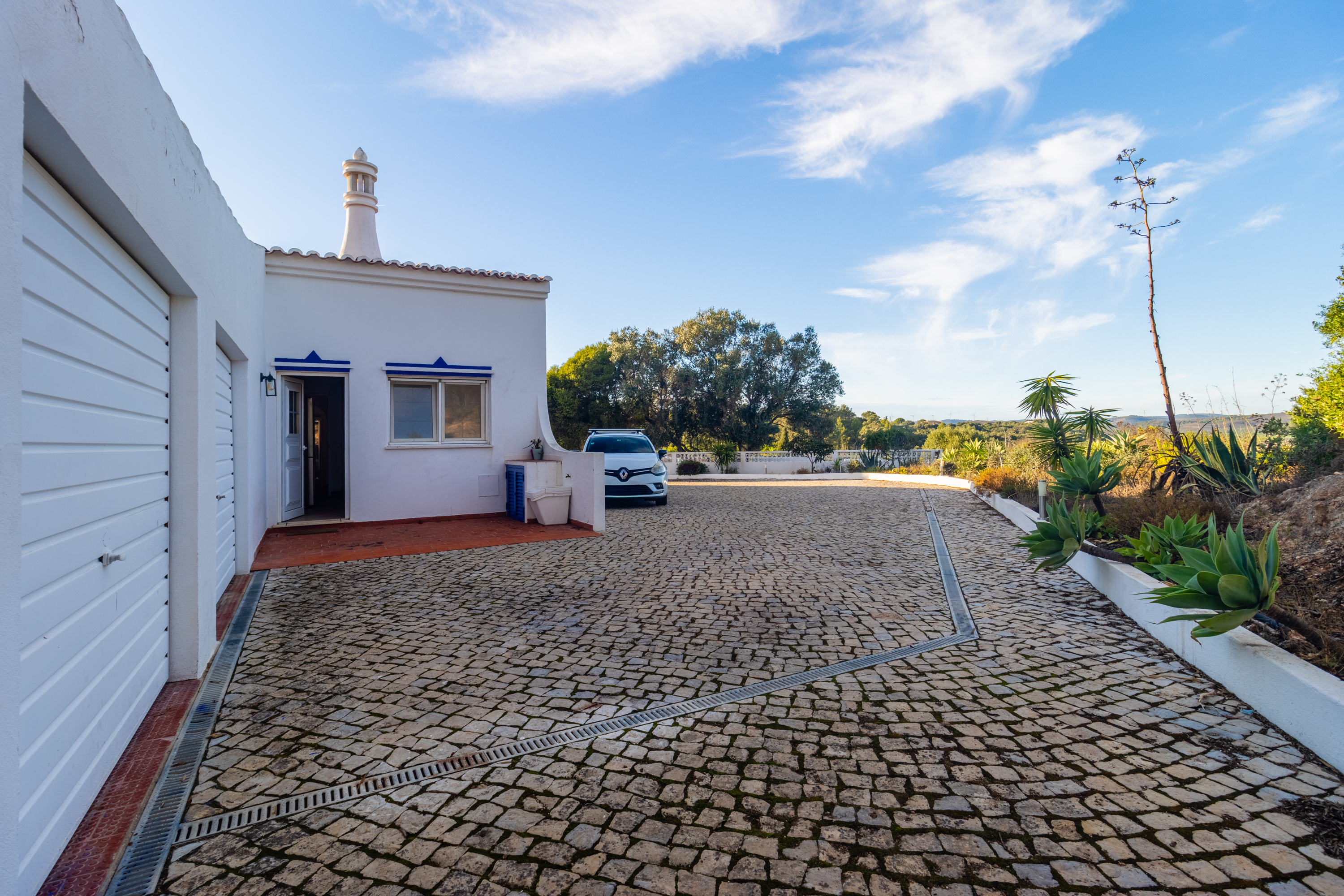 Set on a generous 2,088 m² plot, the property enjoys stunning panoramic views stretching across the countryside to the Monchique hills and the sea beyond. A private gated entrance and a sweeping calçada driveway lead to ample parking space for several cars.