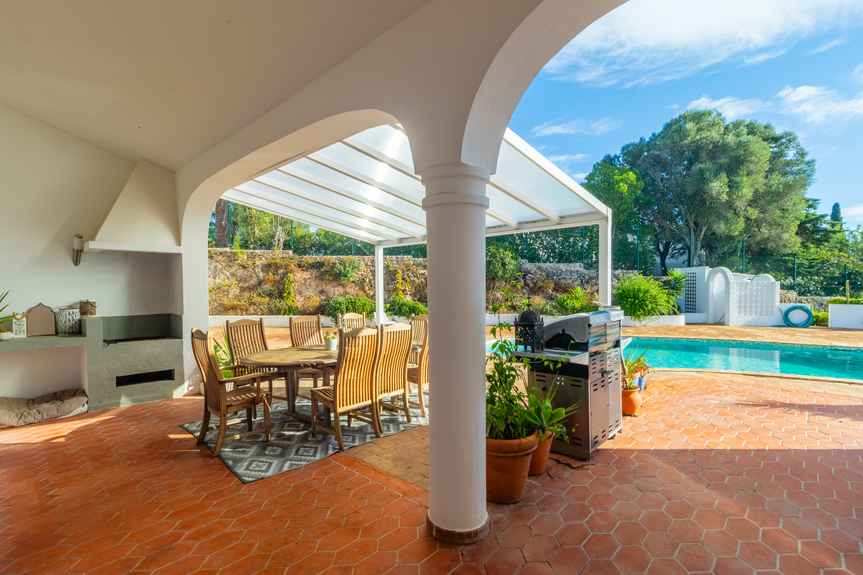 The villa offers a spacious layout with 4 double bedrooms and 4 bathrooms, surrounded by mature landscaped gardens filled with citrus, olive, and fig trees. The centre piece is a kidney-shaped mosaic pool, perfect for relaxing and entertaining in a serene setting.