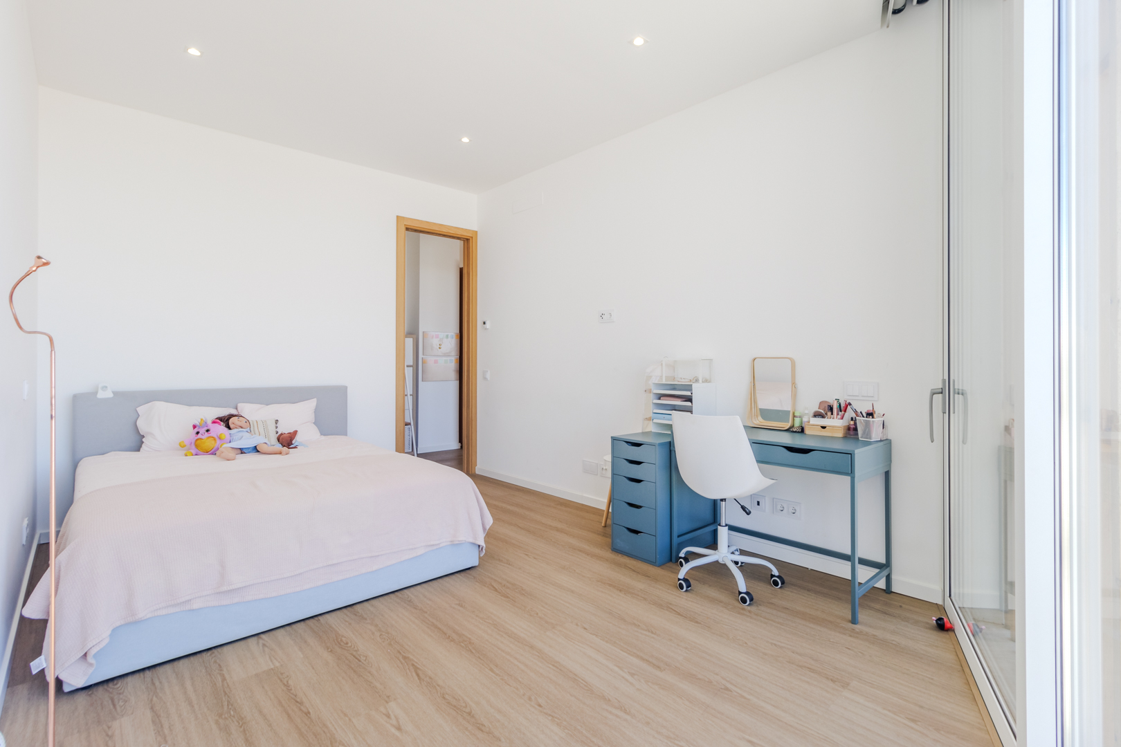 The ground floor also accommodates the technical spaces, including areas designated for the solar panels that provide electricity and hot water, as well as air conditioning units for the downstairs area.