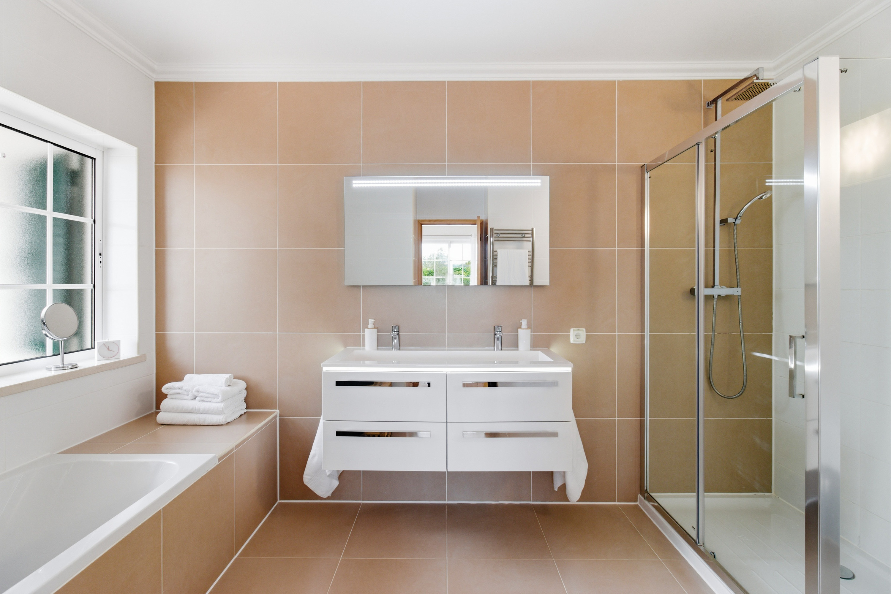 On the entrance level you will find four bedrooms, two of which are en-suite, the others use the family bathroom. The master suite is particularly special, filled with natural light thanks to its triple-aspect windows. This bright and airy retreat also benefits from a beautifully renovated bathroom featuring double sinks and a spacious walk-in shower.