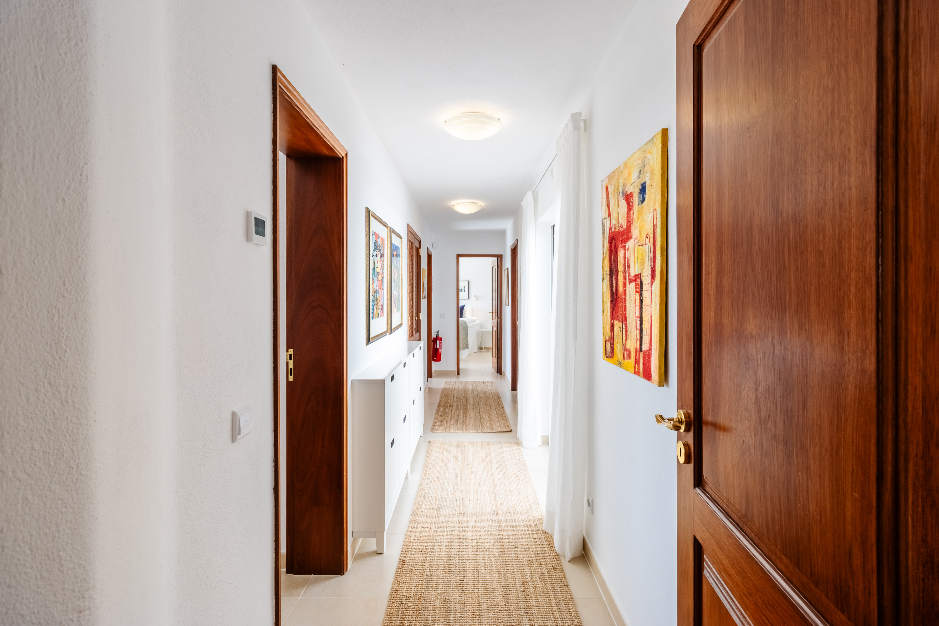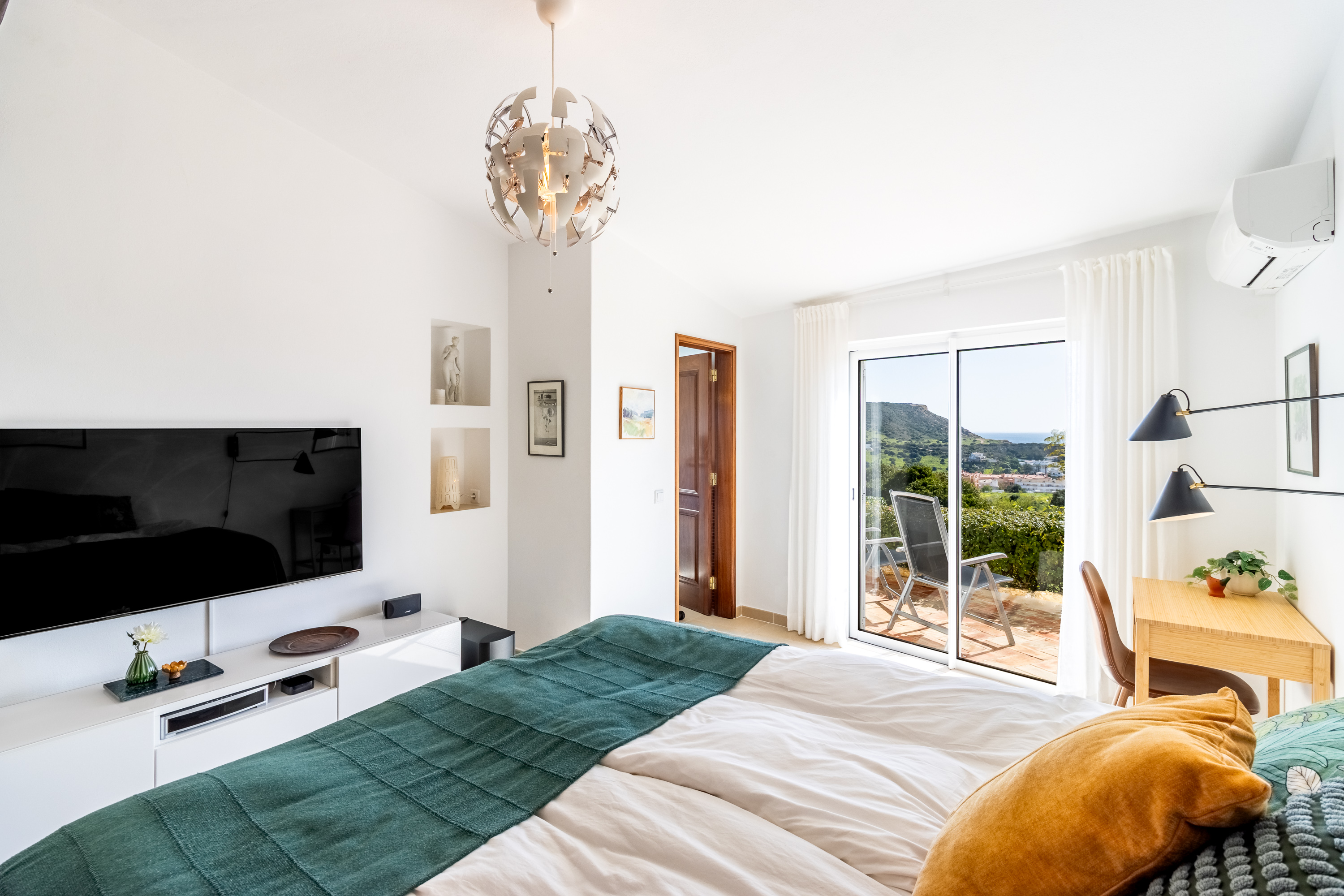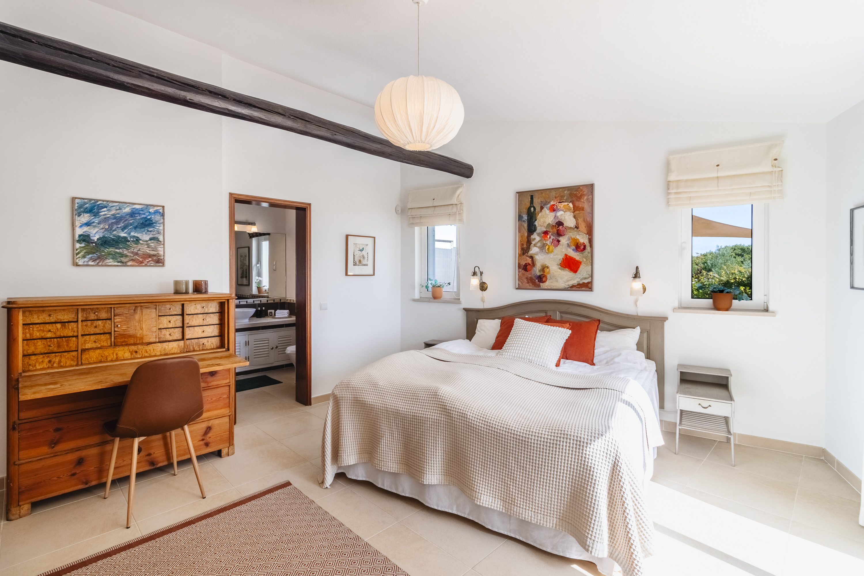 An intermediate level features a guest WC and leads to the lower floor dedicated to the sleeping quarters. The master suite has been intelligently positioned away from the other three bedrooms to ensure maximum privacy. Two bedrooms benefit from en-suite bathrooms, while a third family bathroom serves the remaining bedrooms. All bedrooms enjoy sea views, as does one of the bathrooms, further enhancing the property’s exceptional character.