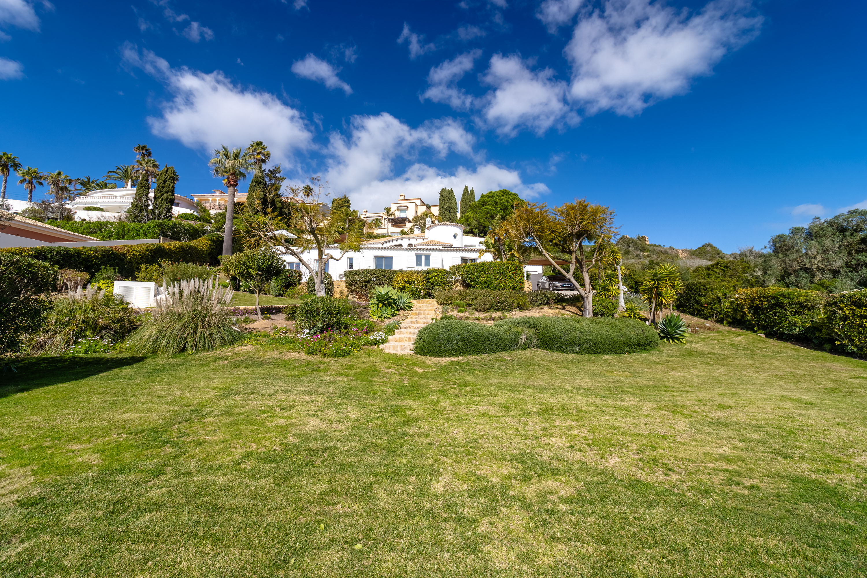 Below the villa, a charming landscaped garden completes the setting while preserving the sea view.