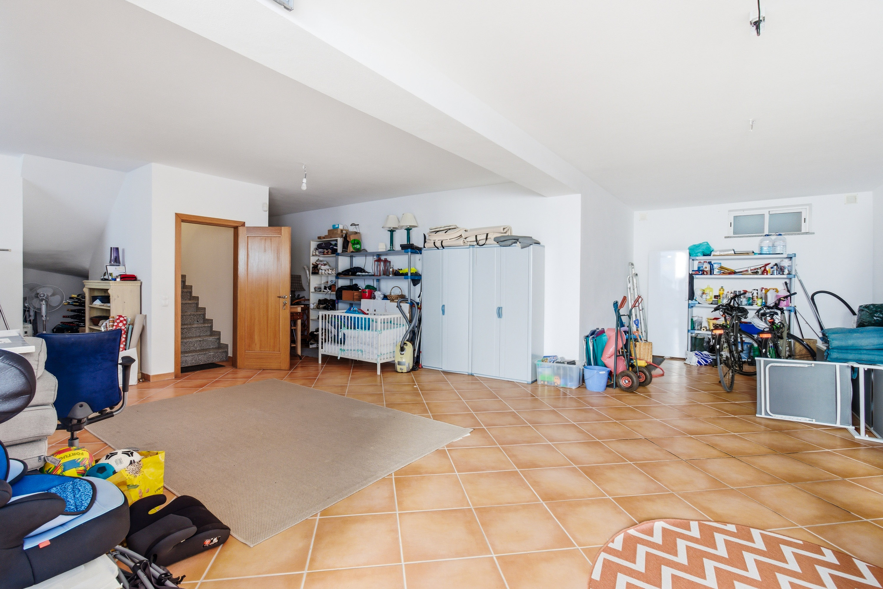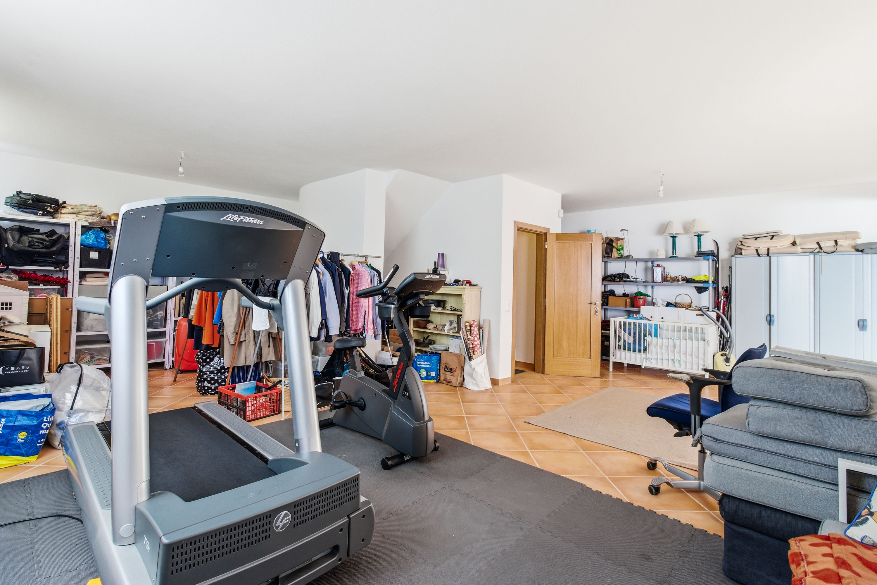 The basement level offers a large double garage with electric roller door and additional flexible space currently used as a gym and storage area. Large windows provide natural light and ventilation, and internal access connects directly to the main house.