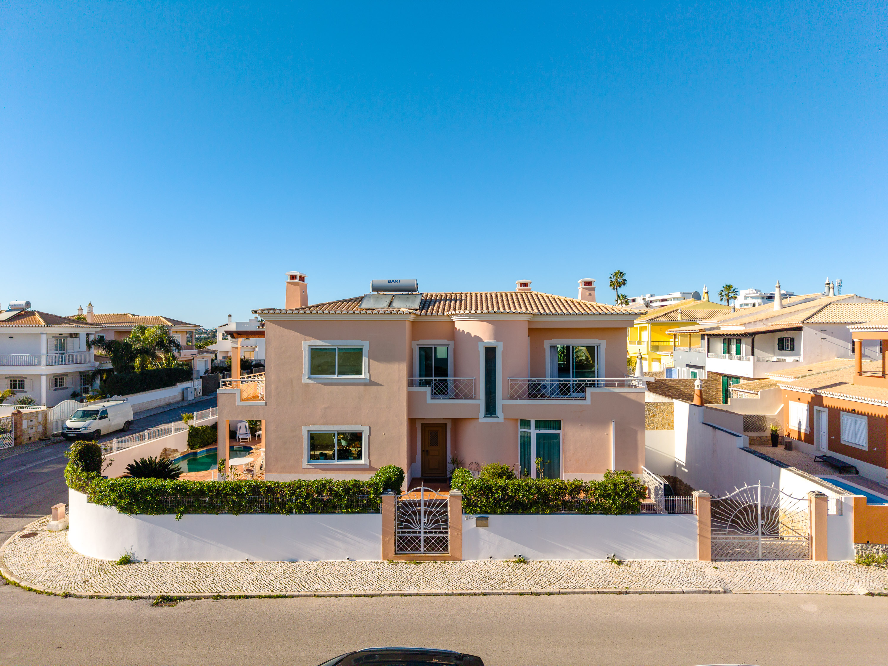 The villa is fully double glazed and equipped with solar panels, central gas boiler heating with a water-based system, and air conditioning, ensuring comfort throughout the year.