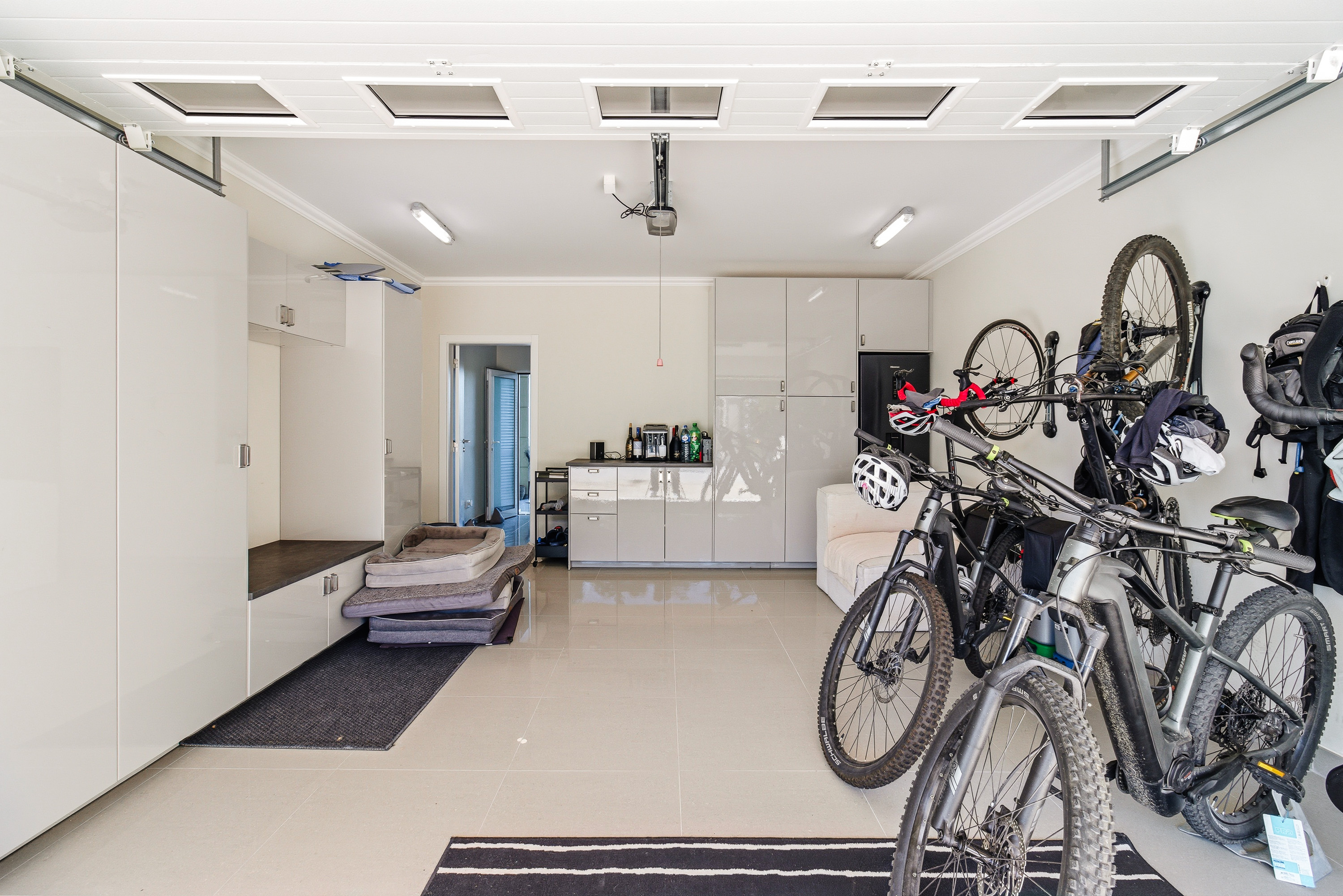 The garage is finished to living-area standards and complemented by a laundry room, built-in storage, and a private driveway.