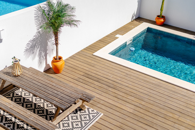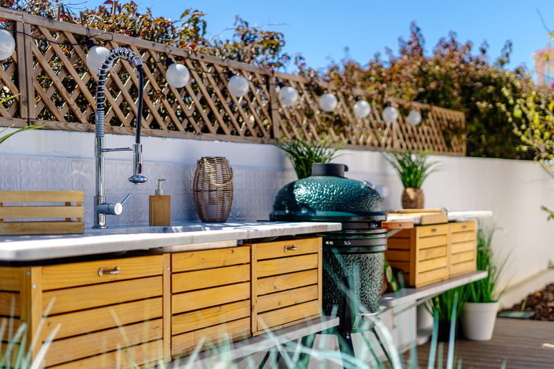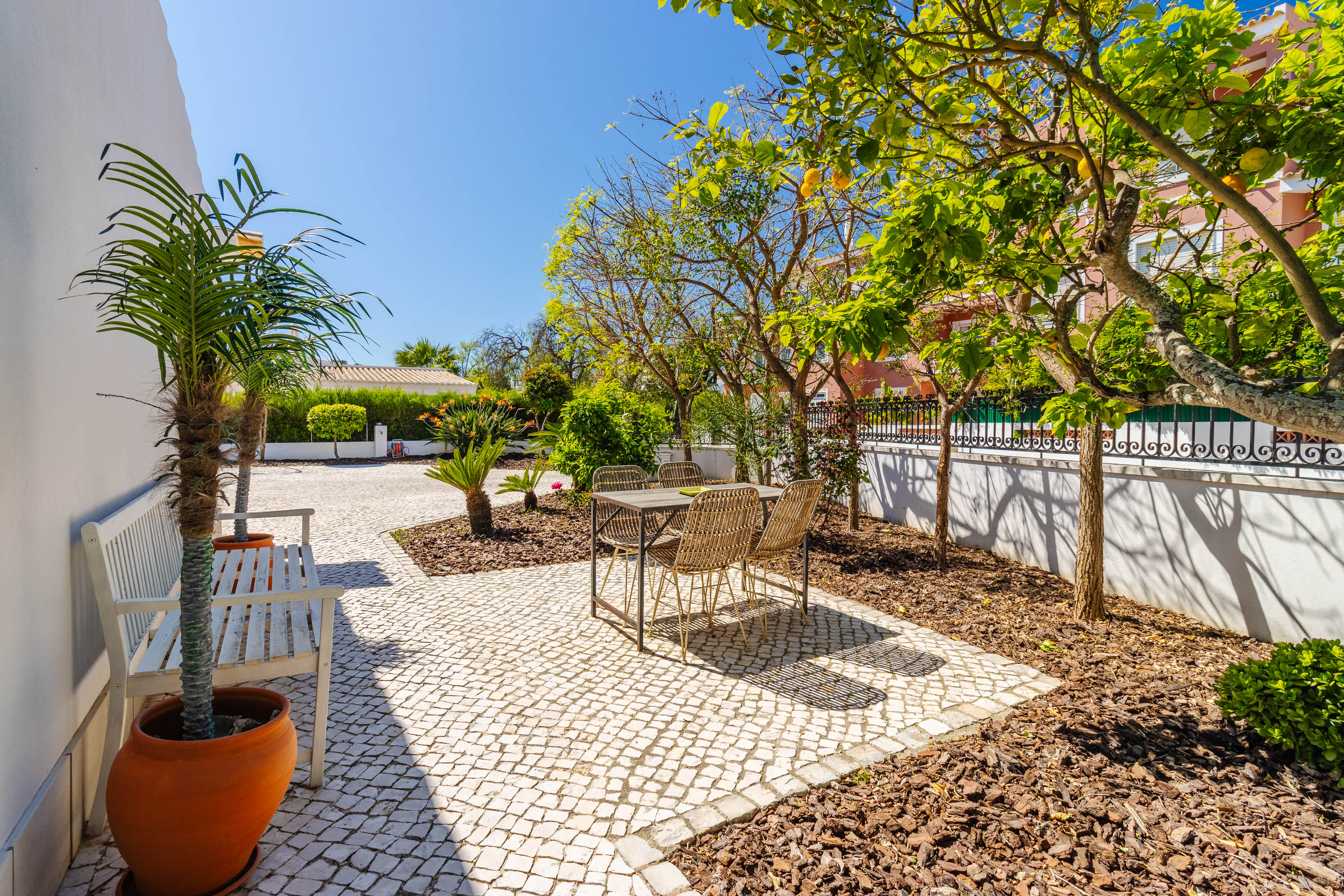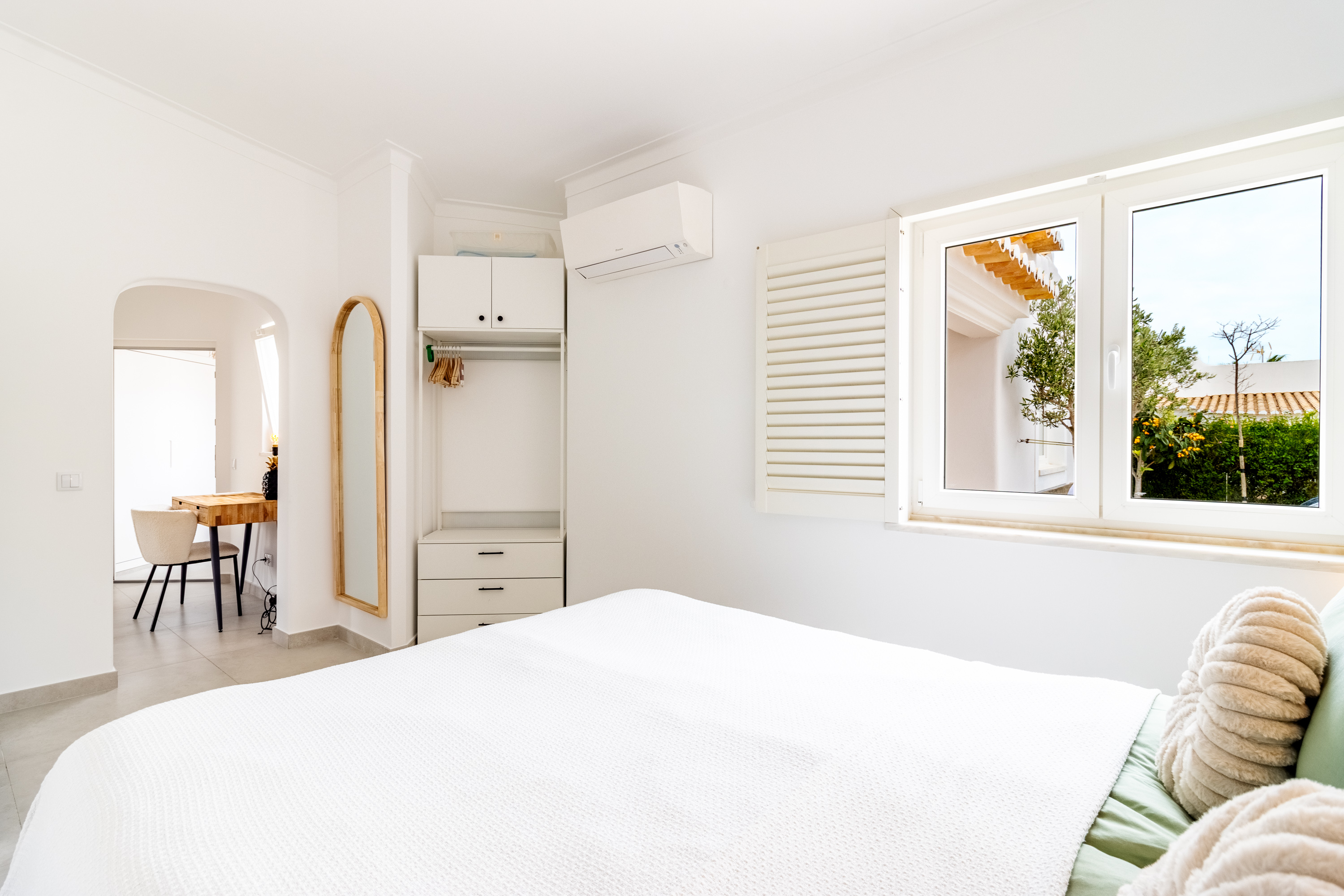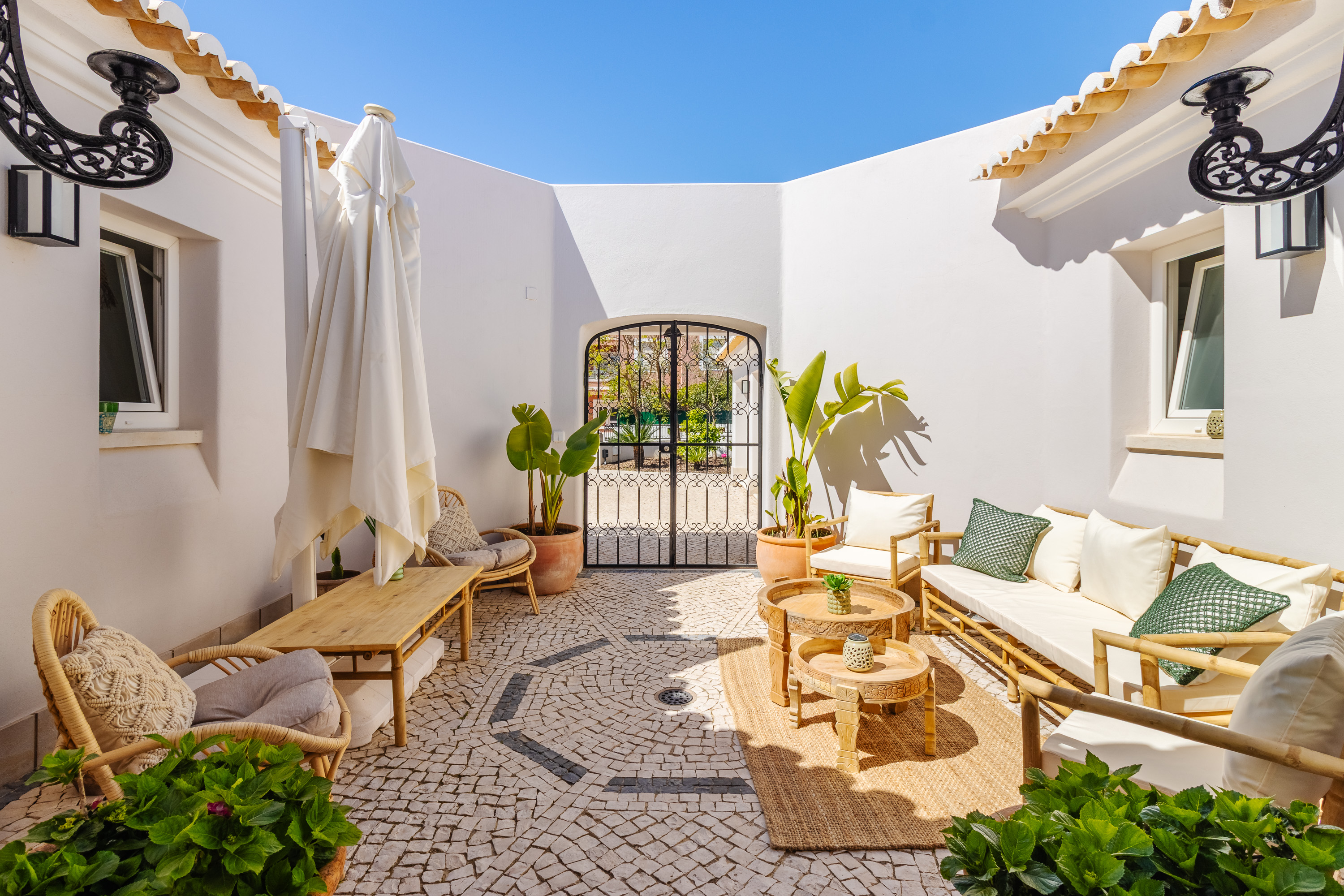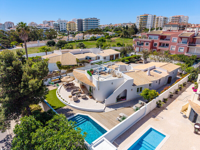 Outside, the beautifully landscaped gardens wrap around the villa and feature an array of tropical plants and fruit trees. The outdoor space includes a swimming pool and an elegantly designed outdoor kitchen, perfect for entertaining. There are many beautiful little terraced areas in which to relax in the sunshine or read a book in the shade. From here, stairs lead to the private roof terrace, where you can relax in the sunshine and enjoy stunning sea and beach views stretching across to Meia Praia and Lagos.