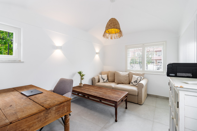 Connected to the main villa is an additional one-bedroom apartment, which can be entirely self-contained if desired. It comprises a living area, kitchen, bedroom, and bathroom, making it ideal for visiting family and friends or as a separate rental opportunity. This space can function independently or be incorporated seamlessly into the main house.