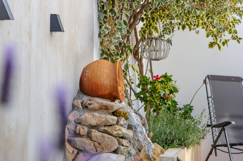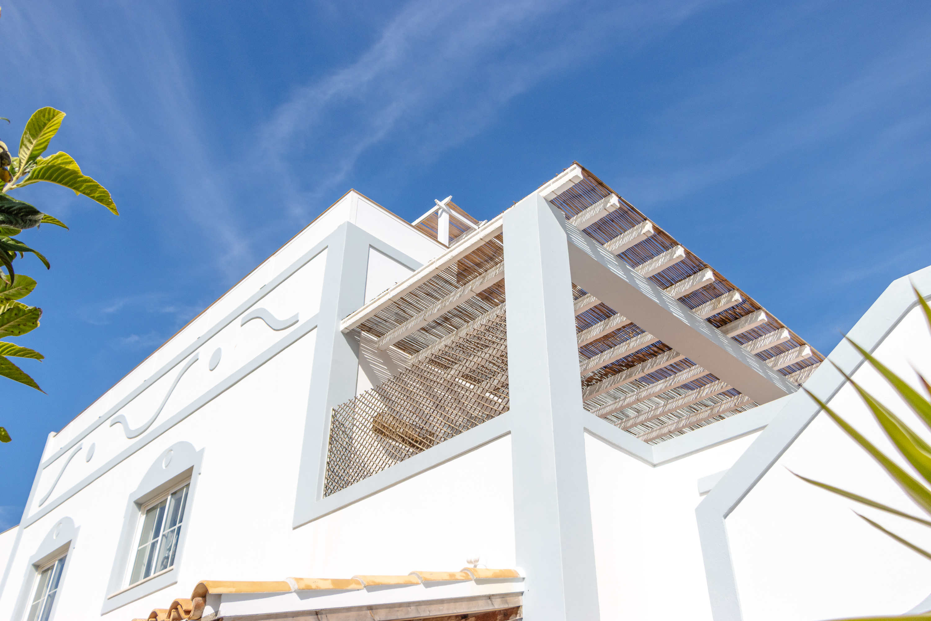 Entering through a beautiful grand door at ground level, you are welcomed into a private oasis where manicured patios, colourful flowerbeds, and lush Mediterranean planting frame the swimming pool and create an atmosphere of complete seclusion. A generous covered terrace stretches along the front of the villa, and offers a perfect spot for dining, entertaining, or simply relaxing beside the pool.