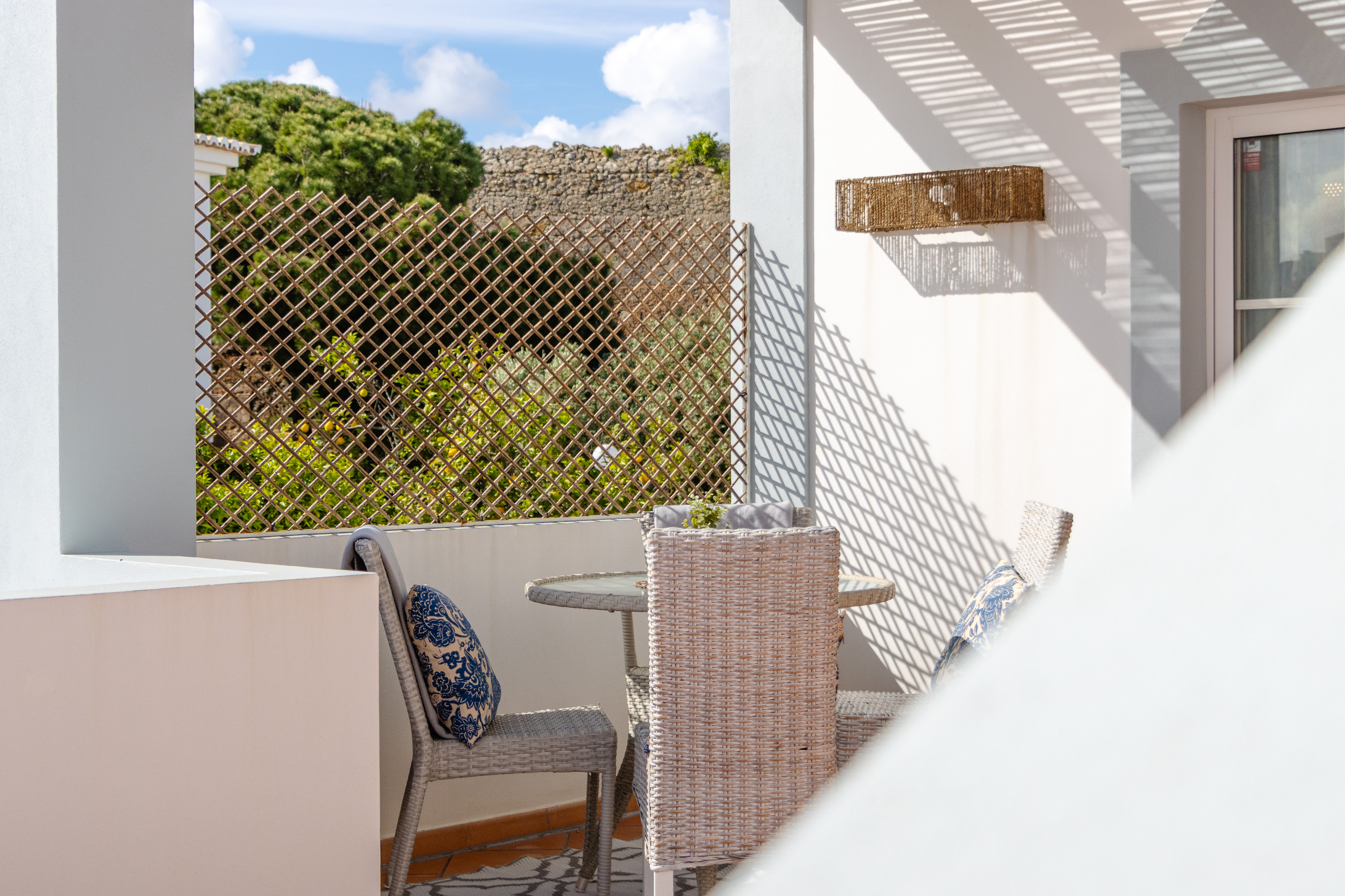 Ascending the exterior staircase, you arrive at a fantastic sun-drenched terrace leading to the second independent apartment. This beautifully proportioned one-bedroom suite features a bathroom and a large open-plan living area with kitchen, all opening onto the terrace where stunning views over the rooftops and historic walls of Lagos begin to unfold. From here, the home enjoys sunshine throughout the day in an elevated and peaceful setting.